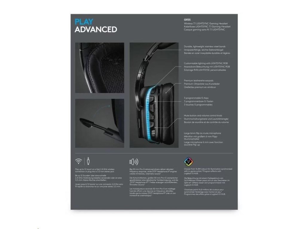 Typ slúchadiel:Plná; Rozhranie slúchadiel:3.5 jack, 2,4 GHz bezdrôtová technológia; Vlastnosti slúchadiel:S mikrofónom, Osvetlené