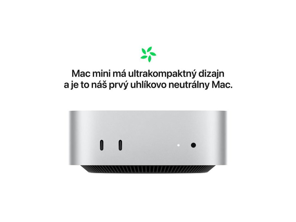UHLÍKOVO NEUTRALNÝ – Mac mini je uhlíkovo neutrálny. Viac informácií o záväzku spoločnosti Apple voči životnému prostrediu nájdeš na apple.com/2030.