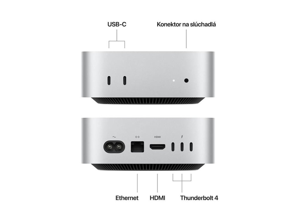 POHODLNÉ PRIPOJENIA – Pripoj sa cez porty Thunderbolt, HDMI a gigabitový Ethernet na zadnej strane. A po prvýkrát sú porty USB-C a konektor na slúchadlá vpredu.