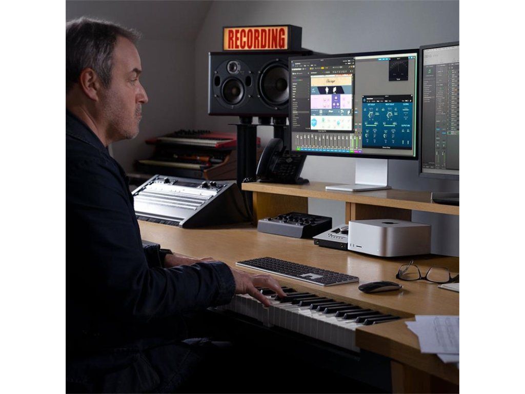 TURBO VÝKON ČIPOV M4 MAX ALEBO M3 ULTRA – Pusť sa do extrémnych projektov od detailných vizuálnych efektov a 3D animácií až po skladanie filmovej hudby. Výkonný Neural Engine podporuje pomoc umelej inteligencie pri komplexných úlohách a pokročilá architektúra grafického procesora podporuje dynamické ukladanie do medzipamäte, mesh shading a sledovanie lúčov.