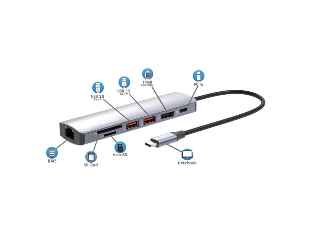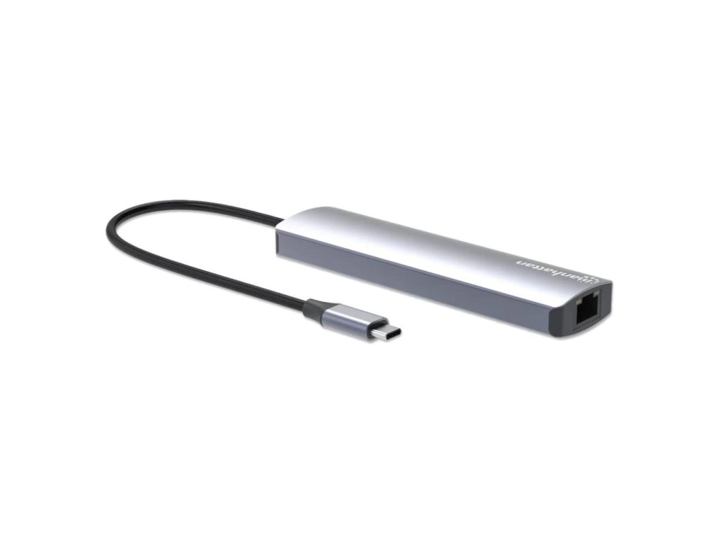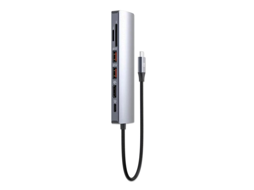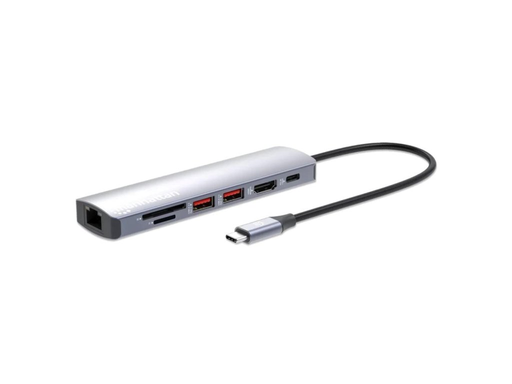 MANHATTAN Dokovací stanice USB-C 7v1, 1xHDMI, 1xUSB-C, 2xUSB, 1xRJ45, čtečka SD karet, šedá 153966 Manhattan