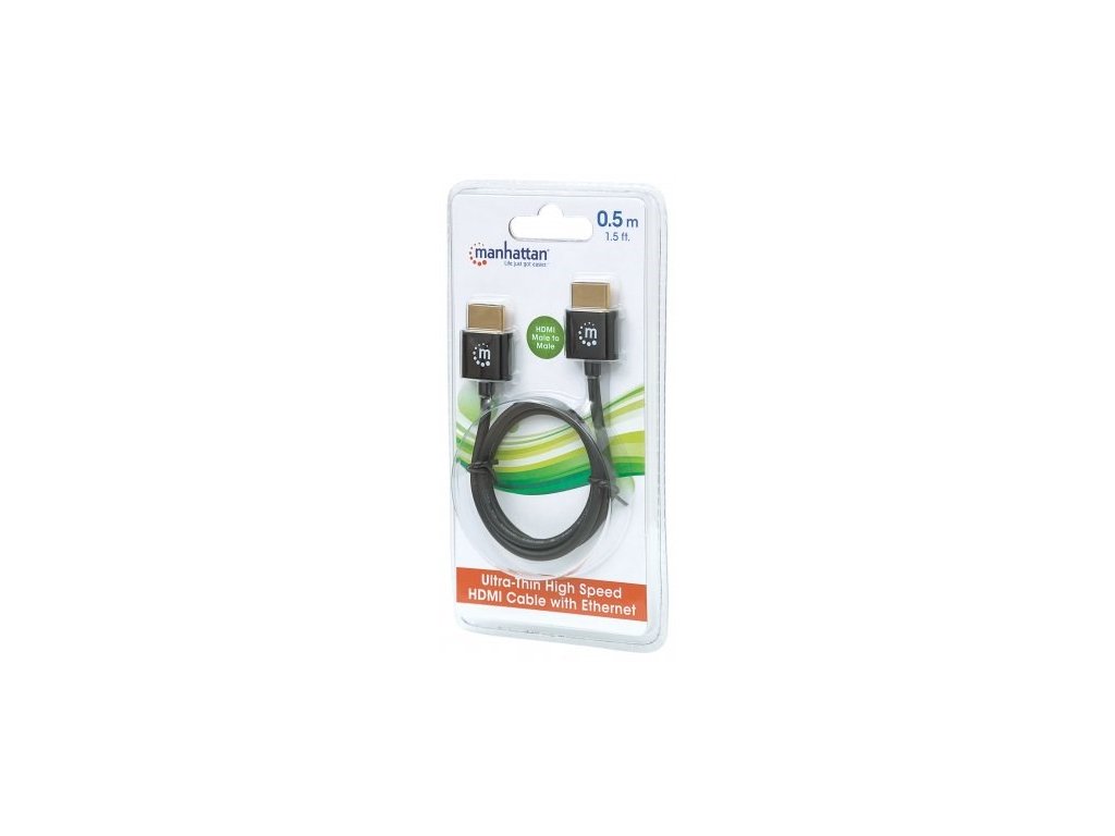 MANHATTAN Ultratenký vysokorýchlostný kábel HDMI s Ethernetom, HEC, ARC, 3D, 4K, HDMI samec - samec, tienený, čierny, 0 394406 Manhattan