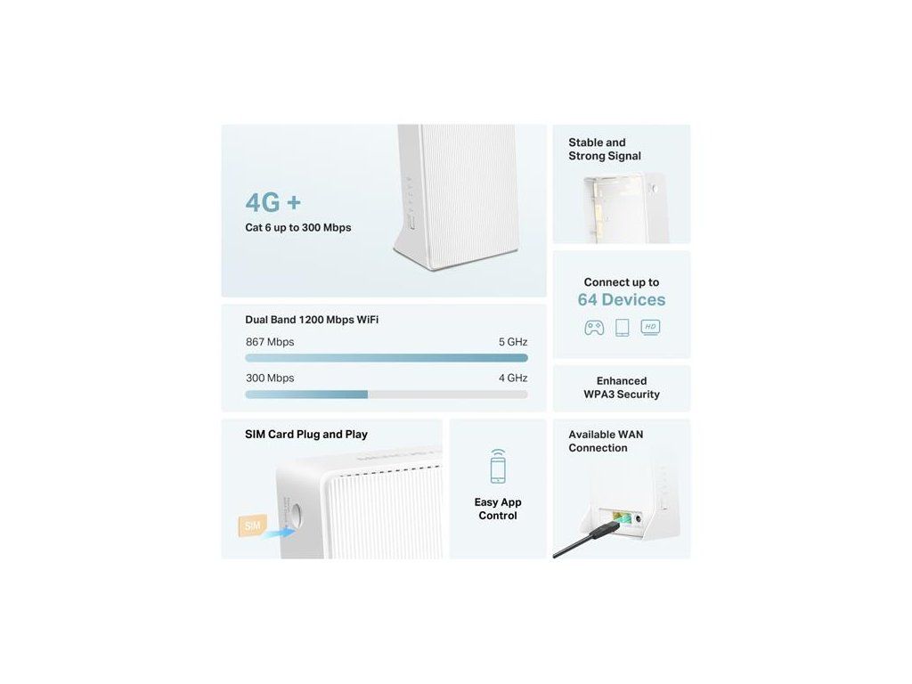 Bezdrôtový dvojpásmový gigabitový smerovač 4G+ Cat6 AC1200