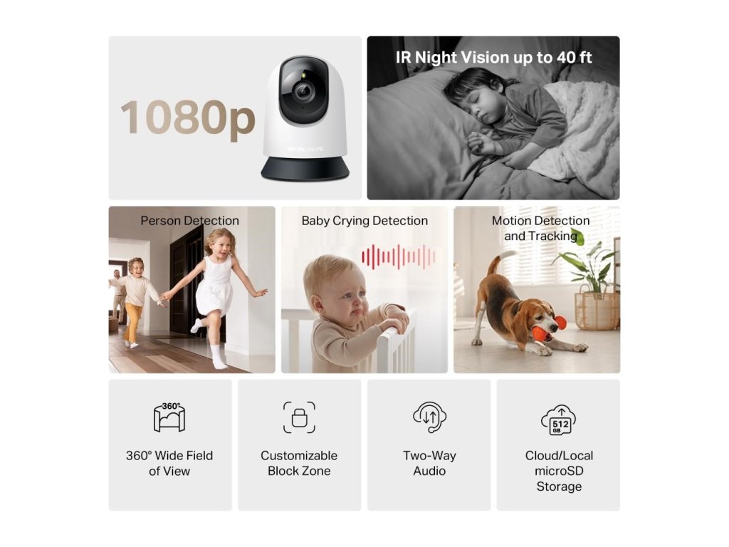 MERCUSYS MC200 domácí/indoor kamera (2MP, Full HD 1080p, IR 12m, WiFi, microSD) Mercusys