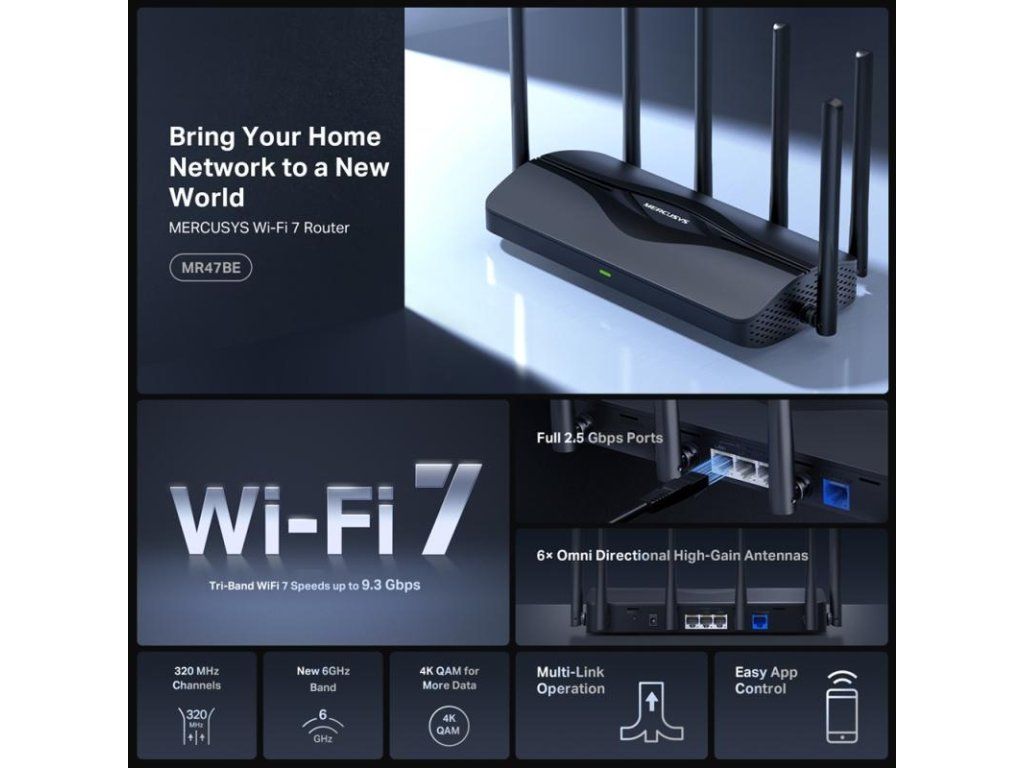 Nejnovější Wi-Fi 7: Díky kanálům 320 MHz, 4K-QAM, MLO, pásmu 6 GHz a dalším funkcím, které Wi-Fi 7 nabízí, bude mít vaše síť ohromující výkon.‡