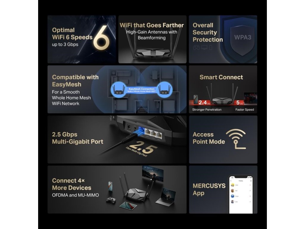 MERCUSYS MR85X WiFi6 router (AX3000,2,4GHz/5GHz,3xGbELAN,1x2,5GbEWAN) Mercusys