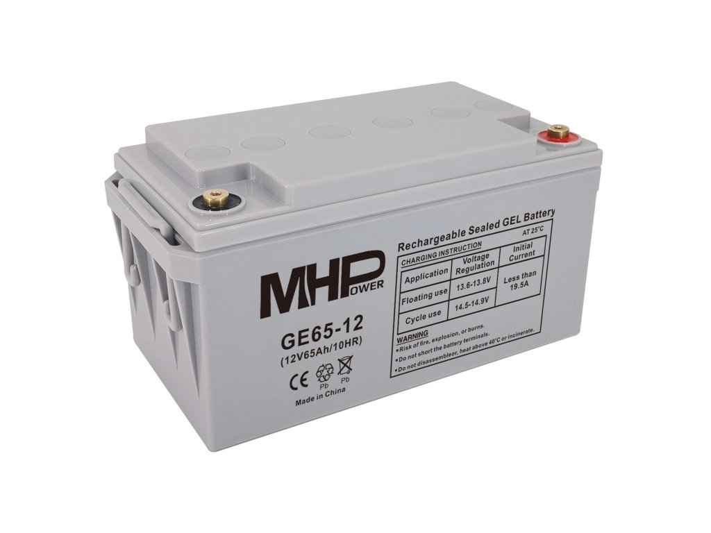MHPower Gelový akumulátor deep cycle VRLA GEL s pokročilou technologií vazby elektrolytu na křemičitý gel přináší řadu nesporných výhod oproti klasickým akumulátorům s tekutým elektrolytem. Těmi nejvýznamnějšími je absolutní bezúdržbovost po celou dobu životnosti, nízká míra samovybíjení, teplotní stabilita, vysoká odolnost hlubokému vybíjení a následné rychlé „zotavení“, snížený vliv vibrací a mechanického poškození gelem fixovaných desek, nevrstvení elektrolytu se všemi negativy a nízká koroze elektrod a sulfatace. Gelové baterie řady MHPower GE jsou vyráběny se speciálními separátory a silikagelem imobilizujícím elektrolyt uvnitř baterie. Osvědčená technologie silikagelu může zlepšit životnost baterie a výkon v širším teplotním rozsahu. Životnost cyklu hlubokého vybití je zvýšena o 50 % ve srovnání s bateriemi řady MS. Životnost Cyklická životnost: 500 cyklů při 80% vybití, 800 cyklů při 50% vybití a 1600 cyklů při 30% vybití. Životnost 12 let v provozu trvalého (float) dobíjení při 20 °C. Baterie je vhodná jak pro cyklický provoz (vybití-nabití) tak pro trvalé dobíjení s malou mírou vybíjení. Gelová baterie má čtyři speciální výhody: 1. Gelová baterie používá gelový elektrolyt, který může zabránit tepelnému úniku baterie se silnou schopností rozptylu tepla, 2. Gelová baterie používá speciální mřížku ze slitiny vápníku a olova a cínu, odolnější vůči korozi, 3. Gelová baterie používá vysoce pevný separátor, aby se zabránilo zkratu, 4. Gelová baterie je vybavena filtračním zařízením proti výbuchu kyselé mlhy, bezpečnější a spolehlivější. Při výrobě gelových baterií GE jsou použity inovativní technologie výrobců olověných baterií včetně svařování TTP, tepelného těsnění, proces vstřikování pouzdra baterie, mřížky ze slitiny High-Tin, vnitřního formování a svařování odlitků, atp. Výrobce má ve srování s konkurenčními továrnami více plně automatizovaných výrobních linek, které mohou výrazně snížit náklady na materiál a práci, díky čemuž je jejich cena velmi příznivá. Přednosti oproti řadě MS: 1. O 50 % delší životnost než u řady MS. 2. Vysoce čistá slitina olova a cínu, snižuje rychlost samovybíjení baterie a zvyšuje životnost baterie. 3. Pouzdro na baterie ABS vyrobené ze surovin LG pro zvýšení životnosti baterie. 4. Technika tepelného těsnění místo lepení pro zvýšení těsnosti a stability baterie. 5. Technika TTP nejen snižuje vnitřní odpor a náklady na materiál, ale také zvyšuje životnost baterie. Hermeticky uzavřená, bezúdržbová Dlouhá životnost, nízké samovybíjení