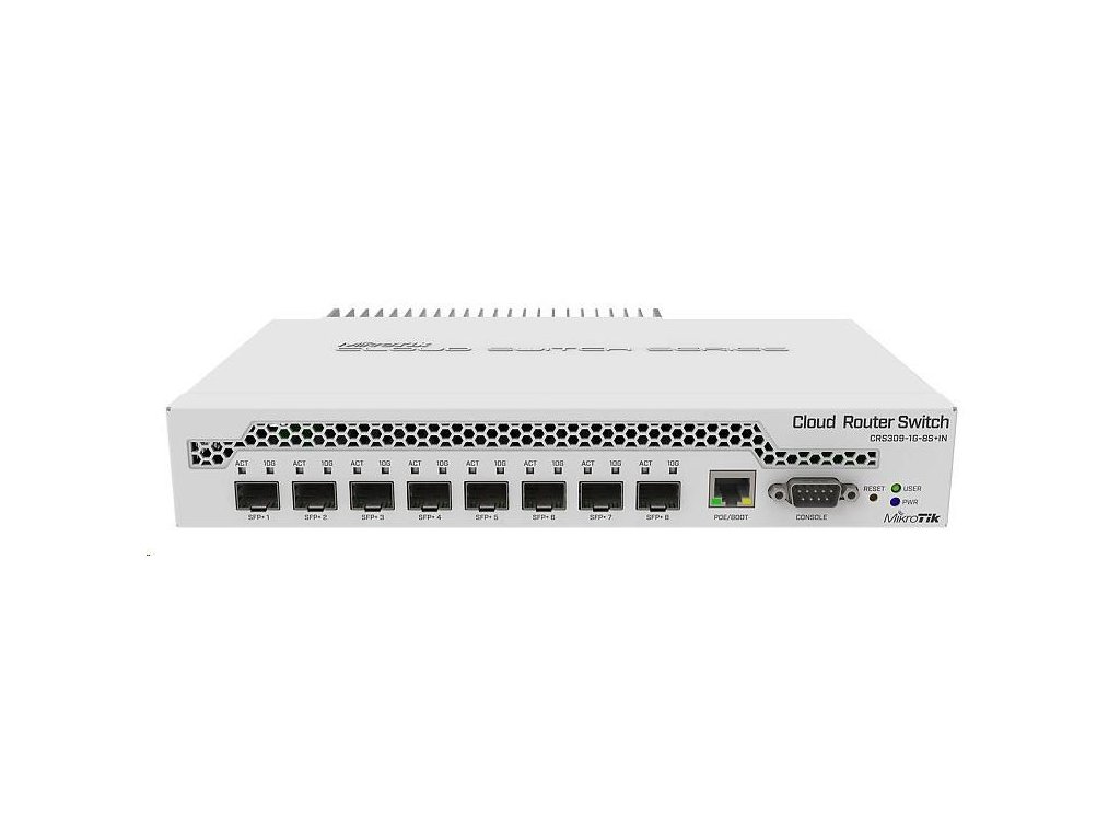 MikroTik Cloud Router Switch CRS309-1G-8S+IN, 800MHz CPU, 512MB RAM, 1xLAN, 8xSFP+ slot, vrátane. Licencia L5