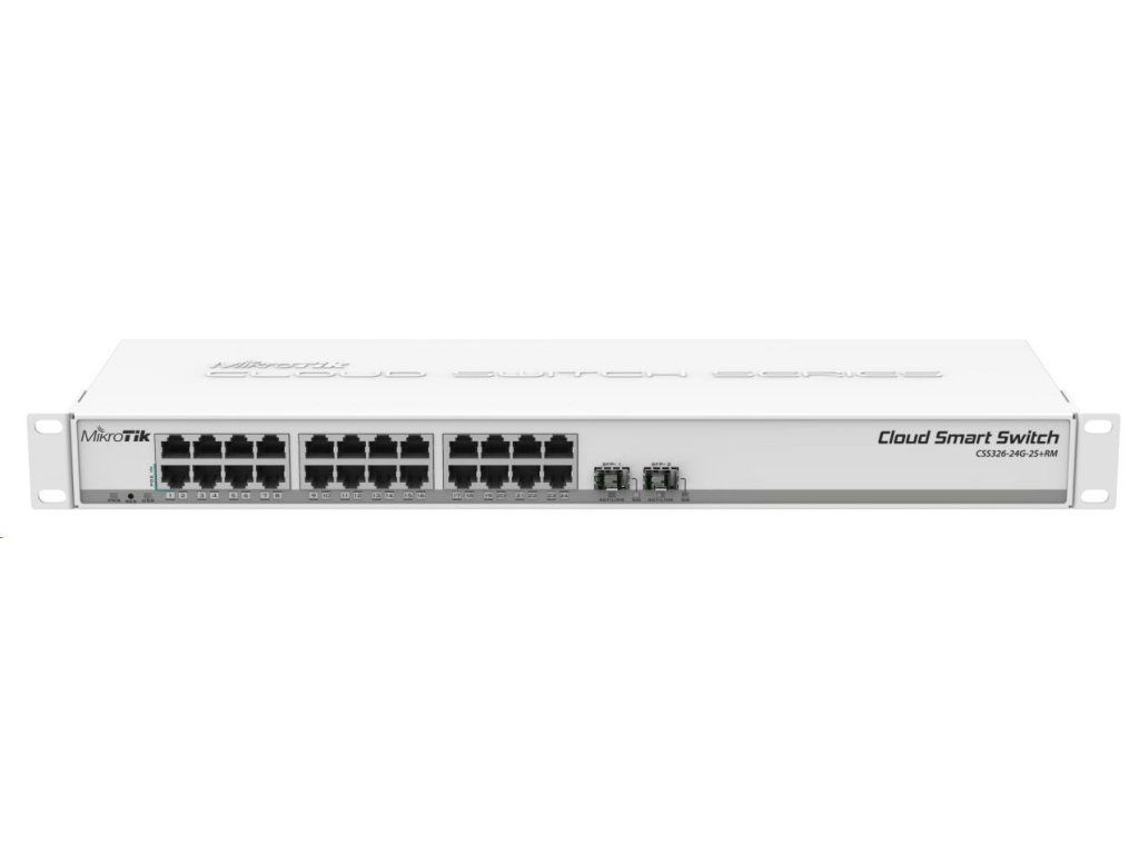 MikroTik Cloud Smart Switch CSS326-24G-2S+RM, 24 neblokovaných gigabitových.porty, 2xSFP+, prepínací čip Marvell DX, Sw