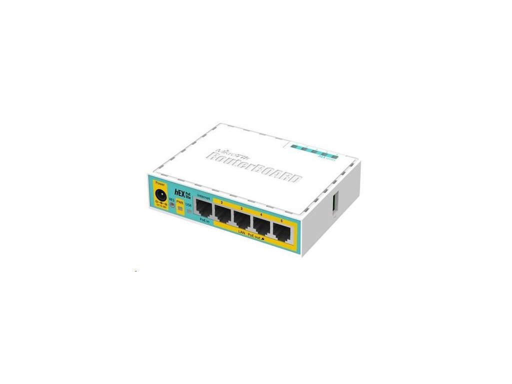 MikroTik RouterBOARD hEX PoE Lite, 650MHz CPU, 64MB RAM, 5x LAN, USB, PoE, 1x USB, vrátane. Licencia L4 RB750UPr2