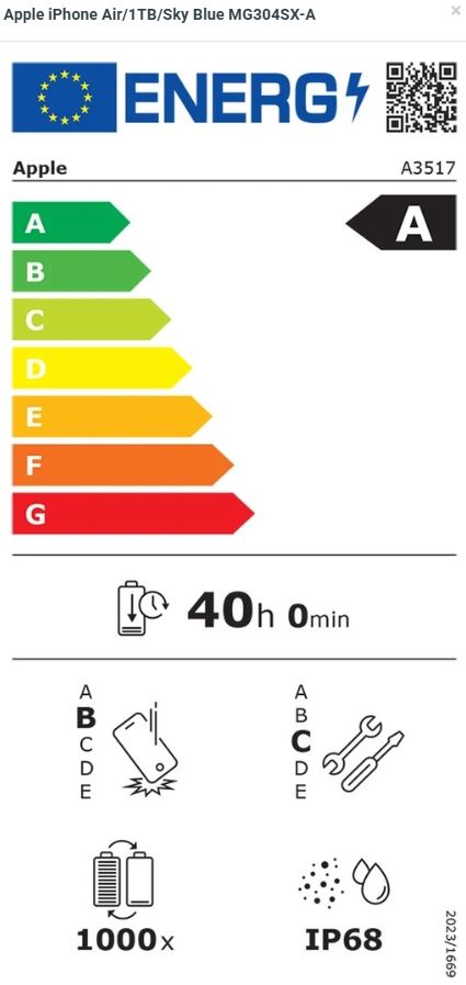 Apple iPhone Air/1TB/Sky Blue MG304SX-A