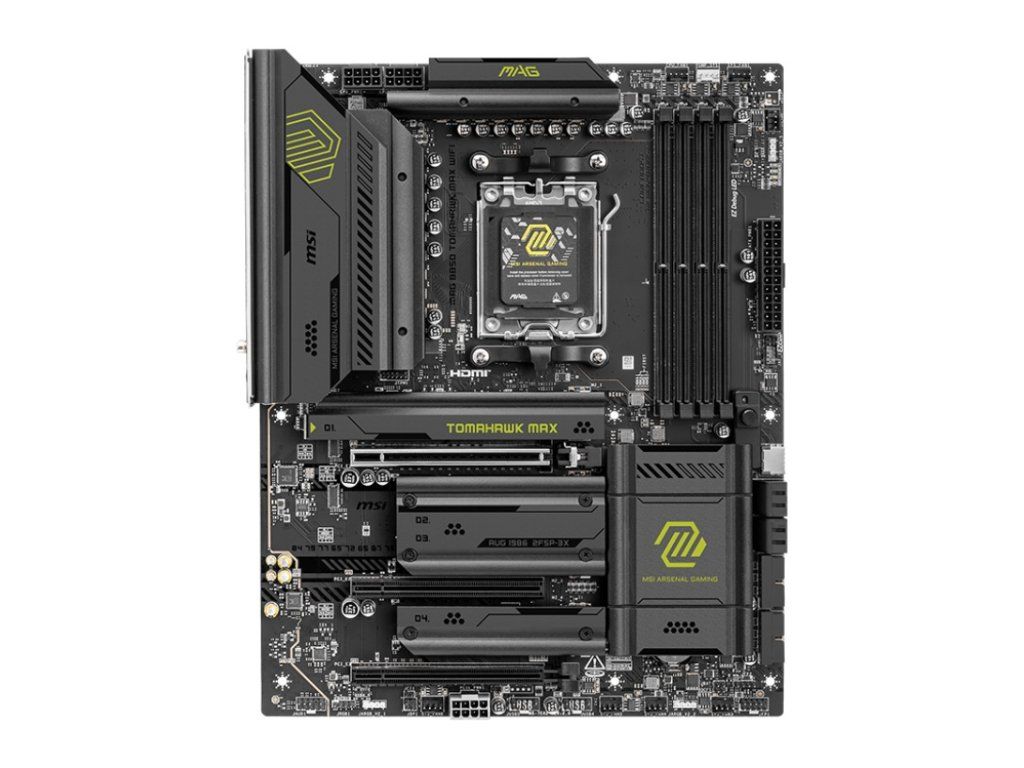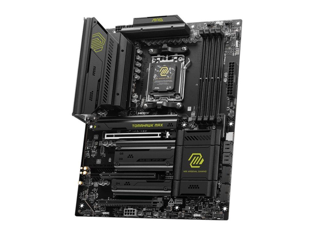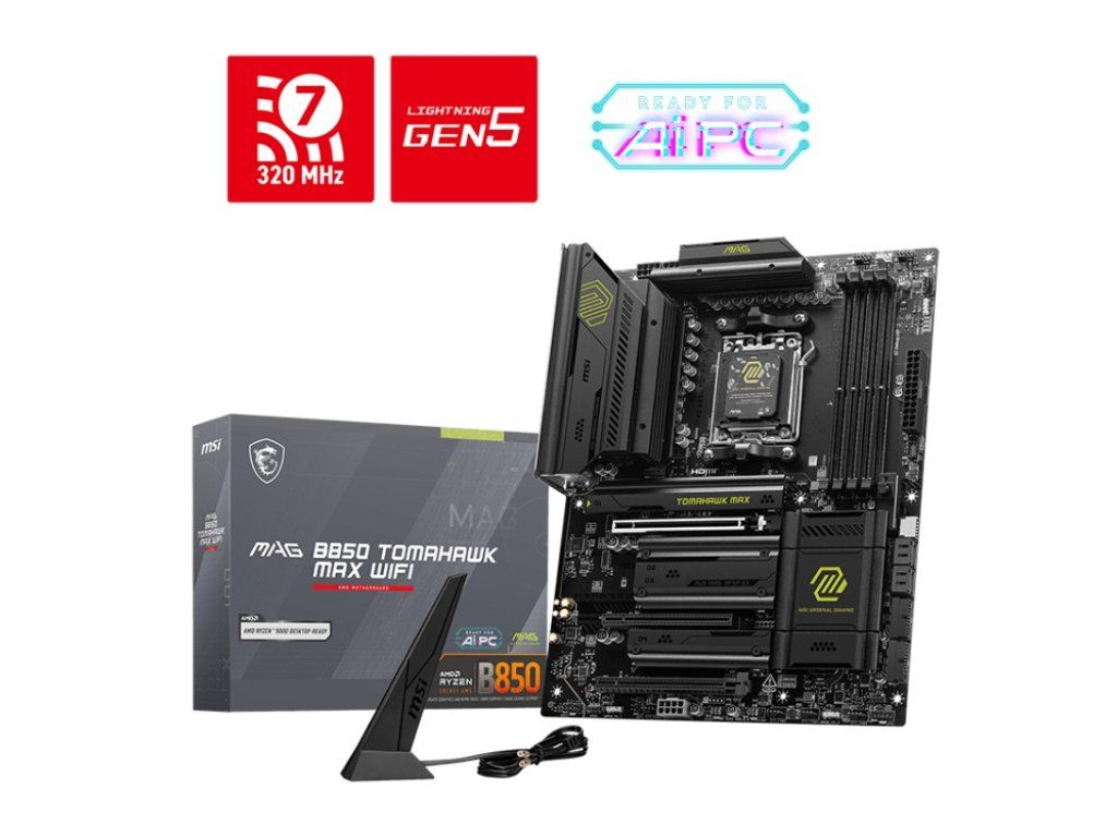MSI MAG B850 TOMAHAWK MAX WIFI * Frozr Guard * EZ DIY * Lightning Gen 5 * Audio Boost 5 Chipset: AMD B850 Rozměrový formát: ATX (304,8x243,84mm) Podpora pro procesory: AMD Ryzen™ řady 9000/8000/7000 Patice procesoru: AM5 Paměť: * 4x DDR5 UDIMM, maximální kapacita paměti 256 GB * podpora paměti 8400-5600 (OC) MT/s/5600-4800 (JEDEC) MT/s * procesory Ryzen™ řady 9000 max. frekvence přetaktování: • 1DPC 1R rychlost až 8400+ MT/s • 1DPC 2R rychlost až 6400+ MT/s • 2DPC 1R rychlost až 6400+ MT/s • 2DPC 2R rychlost až 4800+ MT/s * podpora AMD POR Speed a JEDEC Speed * podpora přetaktování paměti a AMD EXPO™ * podpora Non-ECC, bez vyrovnávací paměti * podpora CUDIMM, pouze Clock Driver bypass mode * dvoukanálová architektura paměti Grafické výstupy: (Specifikace grafiky se mohou lišit v závislosti na nainstalovaném CPU.) * 1x HDMI™ 2.1 s portem FRL, maximální rozlišení 8K 60Hz Zvuková karta: kodek Realtek® ALC4080, 7.1kanálový zvuk, podpora přehrávání až 32bit/384 kHz (na předním panelu) Ethernet: Realtek® 8126VB 5G LAN WLAN + Bluetooth: Wi-Fi 7 + Bluetooth® 5.4, MLO, 4KQAM (bezdrátový modul je předinstalován ve slotu M.2 Key-E) Rozšiřující sloty: 3x PCI-E x16: * PCI_E1 Gen PCIe 5.0 x16 * PCI_E2 Gen PCIe 3.0 x1 * PCI_E3 Gen PCIe 4.0 x4 PCI_E1: - podpora PCIe 5.0 x16 (pro procesory Ryzen™ 9000/7000) - podpora PCIe 4.0 x8 (pro procesory Ryzen™ 8700/8600/8400) - podpora PCIe 4.0 x4 (pro procesory Ryzen™ 8500/8300) Úložný prostor: celkem podporuje 4 sloty M.2 a 4 porty SATA 6Gb/s * M.2_1 (CPU) podporuje až PCIe 5.0 x4, podpora 22110/2280 zařízení * M.2_2 (CPU) podporuje až PCIe 5.0 x4, podpora 2280/2260 zařízení * M.2_3 (čipset) podporuje až PCIe 4.0 x2, podpora 2280/2260 zařízení * M.2_4 (čipset) podporuje až PCIe 4.0 x4, podpora 2280/2260 zařízení * 4x port SATA 6Gb/s RAID řadič: podpora RAID 0/1/10 pro úložná zařízení M.2 NVMe USB: Zadní USB (celkem 10 portů) * 3x USB 3.2 Gen 2 10Gb/s (typ C) * 2x USB 3.2 Gen 2 10Gb/s (typ A) červený * 1x USB 3.2 Gen 1 5Gb/s (typ A) * 4x USB 2.0 Přední USB (celkem 9 portů) * 1x USB 20Gb/s (typ C) * 4x USB 5Gb/s (typ A) * 4x USB 2.0 Porty na zadním panelu: * 3x USB 3.2 Gen 2 10Gb/s (typ C) * 2x USB 3.2 Gen 2 10Gb/s (typ A) červený * 1x USB 3.2 Gen 1 5Gb/s (typ A) * 4x USB 2.0 * 1x HDMI™ * 1x RJ-45 5G LAN * 1x Wi-Fi/Bluetooth * 2x audio konektor * 1x S/PDIF out * 1x tlačítko Flash BIOS * 1x tlačítko Clear CMOS Interní porty: Napájení * 1x napájecí konektor (ATX_PWR) * 2x napájecí konektor (CPU_PWR) * 1x napájecí konektor (PCIE_PWR 8pin) Související s ventilátorem a chlazením * 1x ventilátor CPU * 1x kombinovaný ventilátor (Pump_Sys Fan) * 6x systémový ventilátor Související s úložištěm * 4x SATA 6Gb/s konektor * 4x slot M.2 (M-Key) USB * 4x USB 2.0 * 4x USB 5Gb/s (typ A) * 1x USB 20Gb/s (typ C) Osvětlení LED * 3x adresovatelný V2 RGB LED konektor (JARGB_V2) * 1x RGB LED konektor (JRGB) * (4x EZ Debug LED) * (1x EZ Digit Debug LED) Ostatní * 1x EZ Conn-header (JAF_2) * 2x Front Panel (JFP) * 1x Chassis Intrusion (JCI) * 1x Front Audio (JAUD) * 1x TPM pin header (podpora TPM 2.0) Příslušenství: * SATA 6Gb/s kabel * 1 na 3 EZ Conn-kabel (V2) * EZ Front Panel kabel * EZ Wi-Fi modul * EZ M.2 Clip II klíč * 3x EZ M.2 Clip II * sada samolepek * Shout-Out karta * uživatelská příručka Odkaz na stránku výrobce: https://www.msi.com/Motherboard/MAG-B850-TOMAHAWK-MAX-WIFI