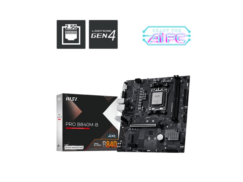 MSI MB Sc AM5 PRO B840M-B, AMD B840, 2xDDR5, 1xHDMI, 1xVGA, mATX