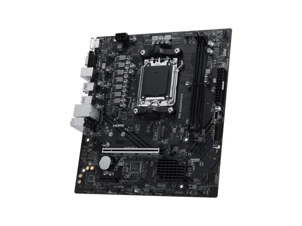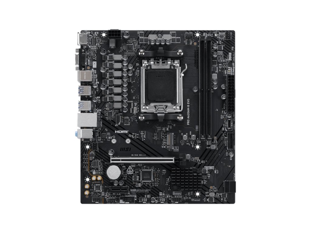 MSI ,PRO A620AM-B EVO Chipset: ,AMD A620A Rozměrový formát: ,mATX (218 x 243,84 mm) Podpora pro procesory: ,AMD Ryzen™ 9000/ 8000/ 7000 Patice procesoru: ,AM5 Paměť: ,2x DDR5, maximální kapacita paměti 128 GB, podpora pamětí DDR5 6800 - 5600 (OC) MT/s / 5600 - 4800 (JEDEC) MT/s *Podporuje AMD POR Speed a JEDEC Speed *Podporuje přetaktování paměti a AMD EXPO™ *Podporuje dvoukanálový režim *Podporuje paměť bez ECC a bez vyrovnávací paměti Grafické porty: , *1x HDMI, podpora HDMI 2.1 s maximálním rozlišením 4K 60Hz *1x VGA s maximálním rozlišením 2048x1536 50Hz, 2048x1280 60Hz, 1920x1200 60Hz Zvuková karta: , *Kodek ,Realtek® ALC897 *7.1-channel *High Definition Audio Ethernet: ,Realtek ,RTL8125 2.5G LAN WLAN + Bluetooth: ,ne Rozšiřující sloty: , *1x PCI-E x16, ,PCI_E1 Gen PCIe 4.0 podporuje až x16 (z CPU) *1x PCI-E x1, ,PCI_E2 Gen PCIe 3.0 podporuje až x1 (z čipsetu) RAID řadič: ,Podporuje RAID 0 a RAID 1 pro úložná zařízení SATA Úložný prostor: , *1x M.2, ,M.2_1 zdroj (z CPU) podporuje až PCIe 4.0 x4, podporuje zařízení 2280/2260 *2x SATA 6G USB: , Zadní USB *2x USB 2.0 *4x USB 5Gb/s Typu A Přední USB *4x USB 2.0 *2x USB 5Gb/s Typu A *1x USB 5Gb/s Typu C Interní porty: , *1x Ventilátor CPU *2x Systémový ventilátor Napájení *1x Napájecí konektor (ATX_PWR) *1x Napájecí konektor (CPU_PWR) Související s úložištěm *1x M.2 *2x SATA 6G USB *4x Port USB 2.0 *2x Port USB 5Gb/s typu A *1x Port USB 5Gb/s typu C Ostatní *2x Front Panel (JFP) *1x Chassis Intrusion (JCI) *1x Front Audio (JAUD) *1x Com Port (JCOM) *1x ,Adresovatelný konektor V2 RGB LED (JARGB_V2) *1x ,Konektor ,RGB LED (JRGB) *1x TPM pin header(Podpora TPM 2.0) Porty na zadním panelu: , *1x HDMI *1x VGA *2x PS/2 (1x klávesnice, 1x myš) *1x RJ-45 *4x USB 5Gb/s Typu A *2x USB 2.0 *3x Audio konektory BIOS: , ,64MB BIOS Odkaz na stránku výrobce: ,https://www.msi.com/Motherboard/PRO-A620AM-B-EVO/Overview
