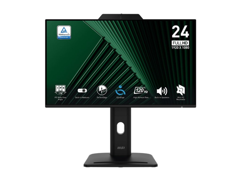 Sjednocené funkce pro maximální pohodlí Zažijte výjimečnou čistotu a výkon s naším 120Hz obchodním monitorem, který je navržen pro plynulé zobrazení a zvýšenou produktivitu. Vestavěná webová kamera usnadňuje virtuální schůzky, zatímco technologie EyeErgo zajišťuje pohodlné sledování během dlouhých pracovních setkání tím, že snižuje únavu očí a podporuje zdravější držení těla. *Vestavěná webová kamera FHD s digitálním mikrofonem a krytem webové kamery *Displej s certifikací TÜV zajišťuje ochranu a zdraví zraku *Technologie MSI EyesErgo s technologií Anti-Flicker pomáhá předcházet namáhání očí a únavě *Obnovovací frekvence 120 Hz poskytuje lepší zážitek ze sledování s obrazem bez blikání *MSI Eye-Q Check pomáhá při samokontrole očí a připomíná, abyste si při dlouhodobém používání monitoru odpočinuli *Stojan je navržen s ergonomickými funkcemi, včetně nastavení sklonu, natočení, výšky a otáčení *Nastavitelný stojan s designem pro montáž na mini-PC poskytuje lepší ergonomii a přehlednost a zvyšuje uživatelský komfort a organizaci *Standardní montovatelný VESA a design slotu pro příslušenství *Dva vestavěné reproduktory *HDR Ready *Adaptive-Sync Typ obrazovky: IPS Úhlopříčka [palce]: 23,8'' Rozlišení: 1920 x 1080 (FHD) Rozteč bodu [mm]: 0.2745 Obnovovací frekvence [Hz]: 120 Hz Poměr stran: 16:9 Povrch displeje: Anti-glare Jas [cd/m2]: 300 Kontrast: 1500:1 Odezva [ms]: 1 ms (MPRT) / 4 ms (GTG) Pozorovací úhly (Horizontál/Vertikál): 178/178 Počet barev: 16.7 M Reproduktory: 2 x 2W Konektory: VIDEO PORTS: *1x HDMI™ 1.4b (FHD@120Hz) *1x DisplayPort 1.2a *1x D-Sub (VGA) USB Ports: *2x USB 2.0 Type-A *1x USB 2.0 Type-B Audio Interface: *1x Headphone-out Napájení: Internal Power Board, 100~240 VAC, 50/60Hz Montáž na zeď: 100 x 100 mm Naklápění monitoru: *ADJUSTMENT (TILT): -5° ~ 20° *ADJUSTMENT (SWIVEL): -45° ~ 45° *ADJUSTMENT (PIVOT): -90° ~ 90° *ADJUSTMENT (HEIGHT): 0 ~ 130 mm Barva: Black Rozměry: 540 x 227 x 412 mm Hmotnost [kg]: 5.5 kg (12.57 lbs) / 7.7 kg (16.78 lbs) Záruka: 3 roky