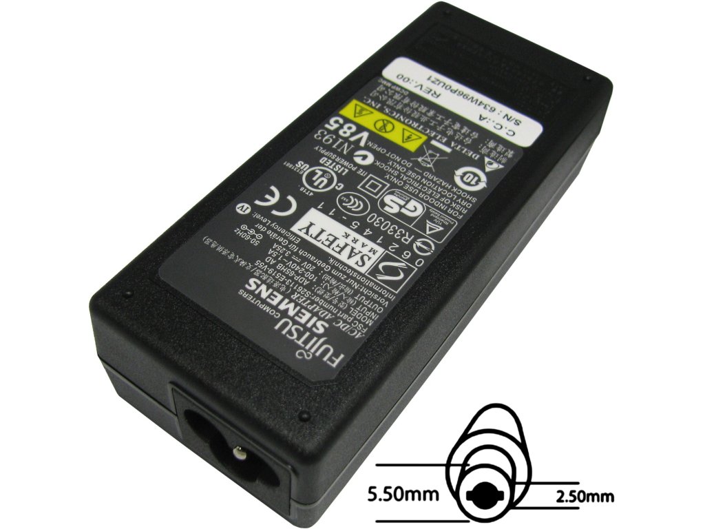 Jedná se o originální napájecí adaptér značky Fujitsu. Výstupní výkon: 65W Výstupní napětí: 20V Rozměr koncovky: 5.5x2.5 mm balení neobsahuje síťovou šňůru 3 pin Náhradní díl adaptér je možné použít pro modely notebooku: Fujitsu Amilo A series A1400, A1650, A1650G, A1655G, A1800, A2000, A2400, A3660, A3667 Amilo L series L7320, L7320G Amilo La series La1703, La1705, La1718, La1720, La1818, La1820 Amilo Li series Li1705, Li1718, Li1720, Li1818, Li1820, Li2727, Li2732, Li2735, Li3710, Li3910 Amilo M series M1405, M1415G, M1424G, M1425G, M1450, M1450G, M1451, M1451G, M4438, M4438G, M6450, M6450G, M6453, M6453G, M6500, M6800, M7300, M7400, M7440G Amilo Pa series Pa1510, Pa2549, Pa3515 Amilo Pi series Pi1505, Pi1506, Pi2510, Pi2512, Pi2515, Pi3525, Pi3560, Pi3625, Pi3660 Amilo Pro series V1000, V2000, V2010, V2020, V2030, V2035, V2040, V2045, V2055, V2060, V2065, V2085, V3205, V3405, V3505, V3515, V3525, V3545, V8010, V8210 Amilo Si series Si1520, Si2428, Si2528, Si2536, Si2654, Si3655, SI2636 Fujitsu Amilo Si series Návod k obsluze naleznete zde: https://shop.sil.cz/katalog/soubory/navodkobsluze.pdf