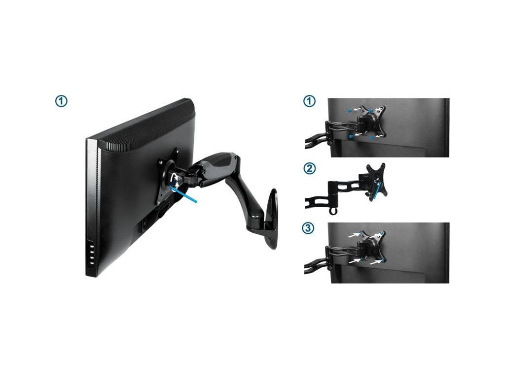 Monitor arm with complete 3D movement for Wall mount installation Rozmery (cm) DxŠxV: 43,4x12,9x8,5 Váha(kg): 1,65