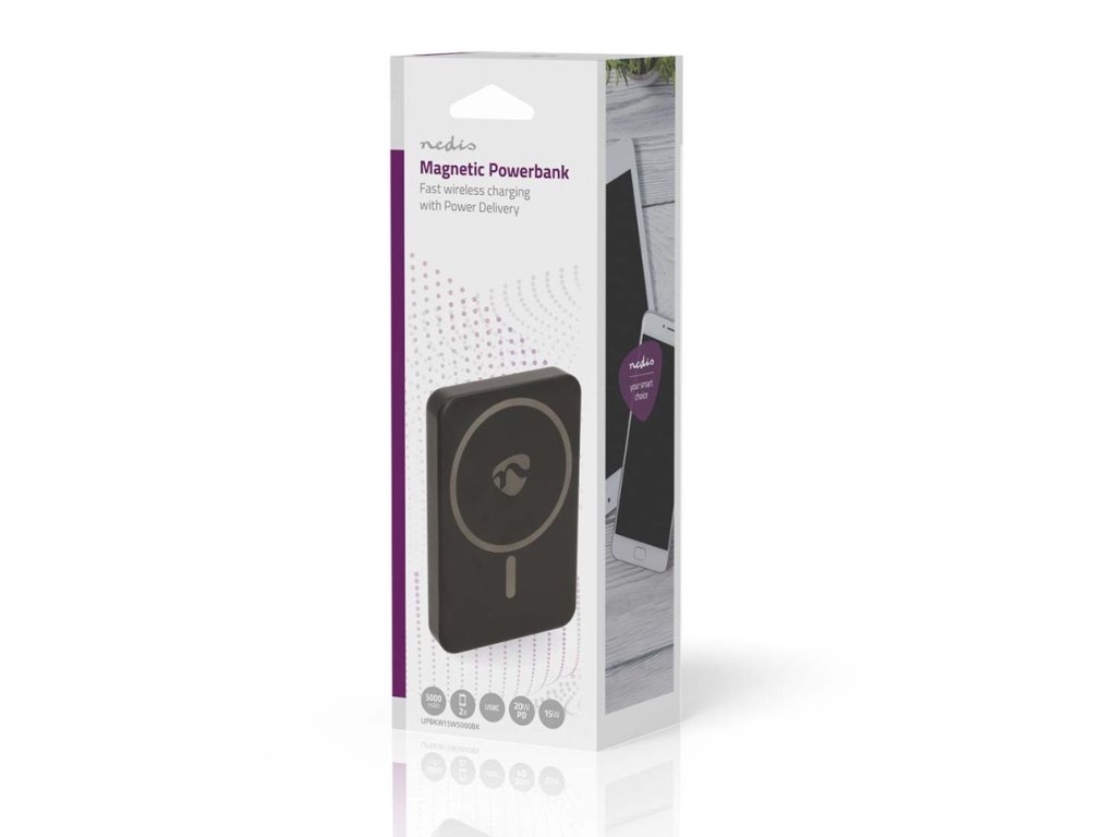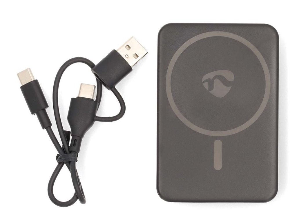 Nedis UPBKW15W5000BK - Powerbanka | 5000 mAh | Bezdrátové nabíjení / Výstup1x USB-C | Vstup1x USB-C | PD3.0 20W