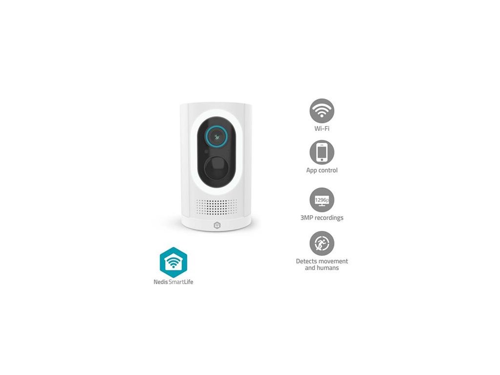 Nedis WIFICBO33WT - SmartLife Venkovní Kamera| Wi-Fi | Reflektor | 3MP Full HD 1296p | IP65 | Snímač pohybu | Bílá