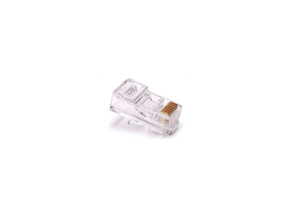 Konektor RJ45 8/8 pro kulatý drát , zlacení 50 micron, vhodný pro CAT5e (balení 100ks)