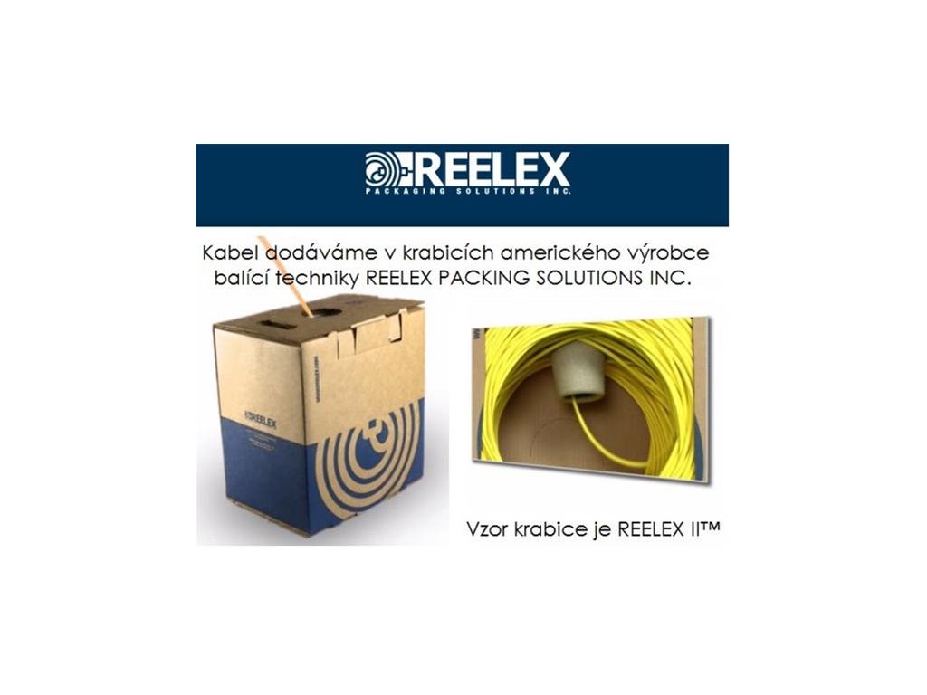kabel je dodáván v krabici REELEX II amerického výrobce obalů REELEX Packaging Solutions, Inc.
