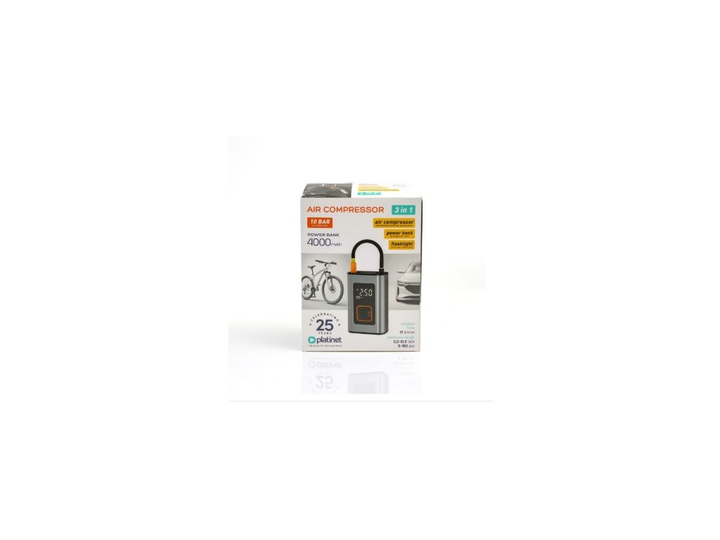 PLATINET Kompresor 10 bar s powerbankou 4000mAh a svítilnou ( mini el pumpa na kolo - auto) PTC22 Platinet