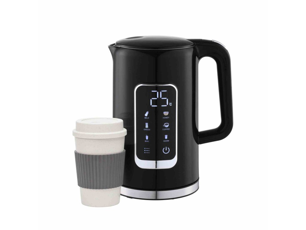 "Rychlovarná konvice vyrobená z vysoce kvalitních materiálů zajišťuje odolnost a snadné čištění. Zapomeňte na náhodné ohřívání rukojeti levných a nekvalitních konvic – naše konvice má pouzdro, které se nezahřívá, což zvyšuje bezpečnost používání. Díky přehlednému digitálnímu displeji a pěti úrovním teploty, můžete přesně přizpůsobit teplotu vybranému nápoji. Funkce udržování teploty vám umožní vychutnat si horký nápoj i po dlouhé době.