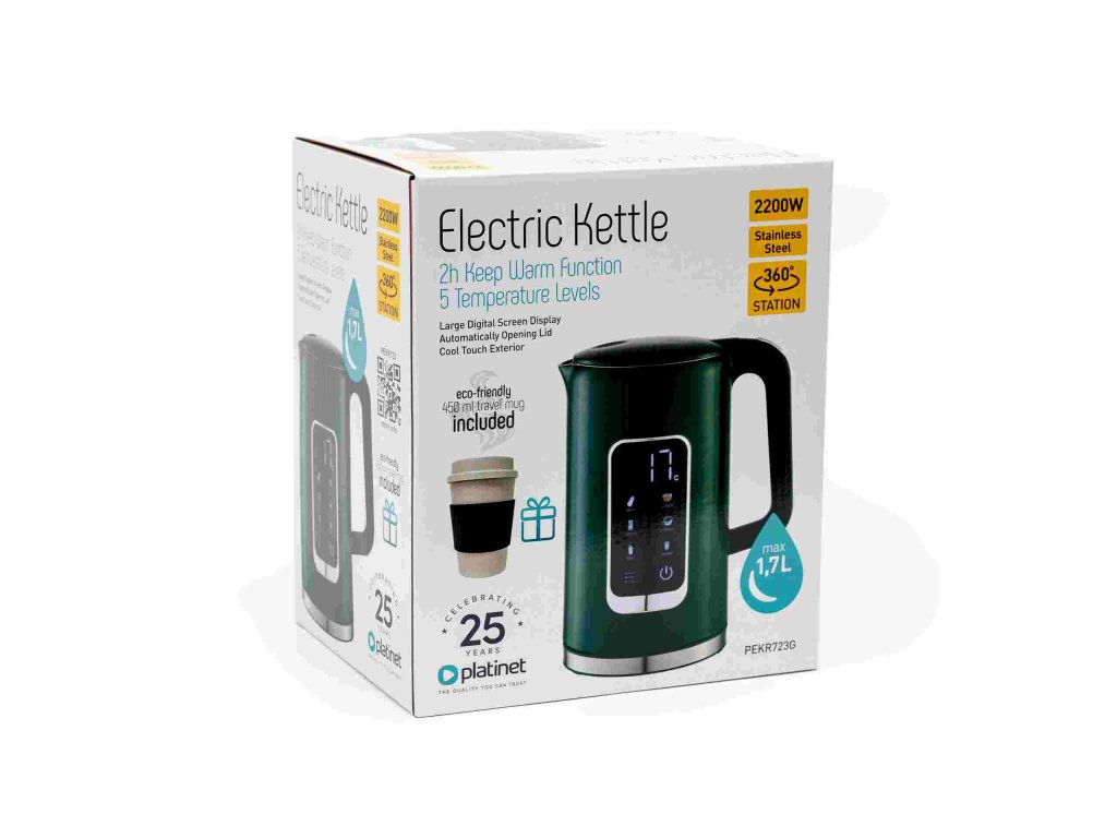 PLATINET RYCHLOVARNÁ KONVICE LCD 1,7L 5 TEPLOT + 450 ML CESTOVNÍ HRNEK, OLIVOVĚ ZELENÁ PEKR723G Platinet