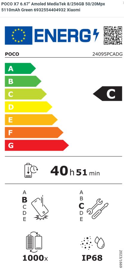 POCO X7 6.67" Amoled MediaTek 8/256GB 50/20Mpx 5110mAh Green 6932554404932 Xiaomi