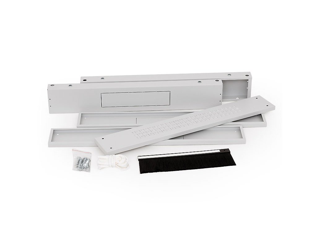 Konstrukci tvoří dva podélné boční díly, které odpovídají hloubce rozvaděče, a dva kryty (přední a zadní) s odpovídající šířkou. Podstavce se liší maximálním doporučeným zatížením. OBSAH SADY *2 x podélný boční díl s prostupem pro kabely (s vylamovacími záslepkami) *2 x kryt s kabelovými prostupy (s vylamovacími záslepkami) *1 x kryt s filtrem *1 x protiprachový kartáč *spojovací materiál
