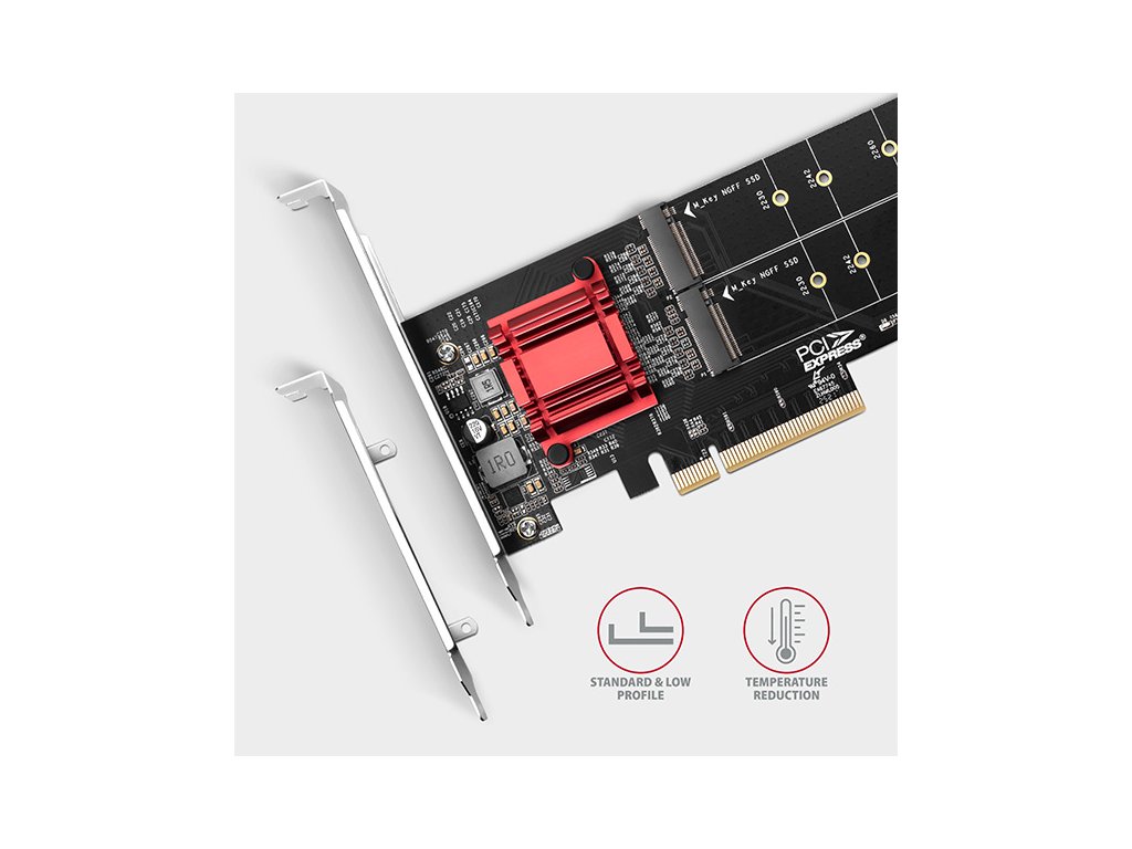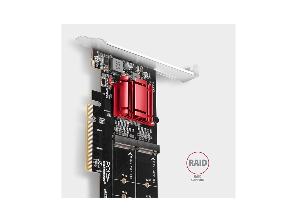 POUŽITÉ (SECOND HAND) - AXAGON PCEM2-ND, PCIe x8 řadič - 2x M.2 NVMe M-key slot, RAID, podpora desek bez bifurkace, vč. PCEM2-ND--POUŽITÉ (SECOND HAND) Axagon