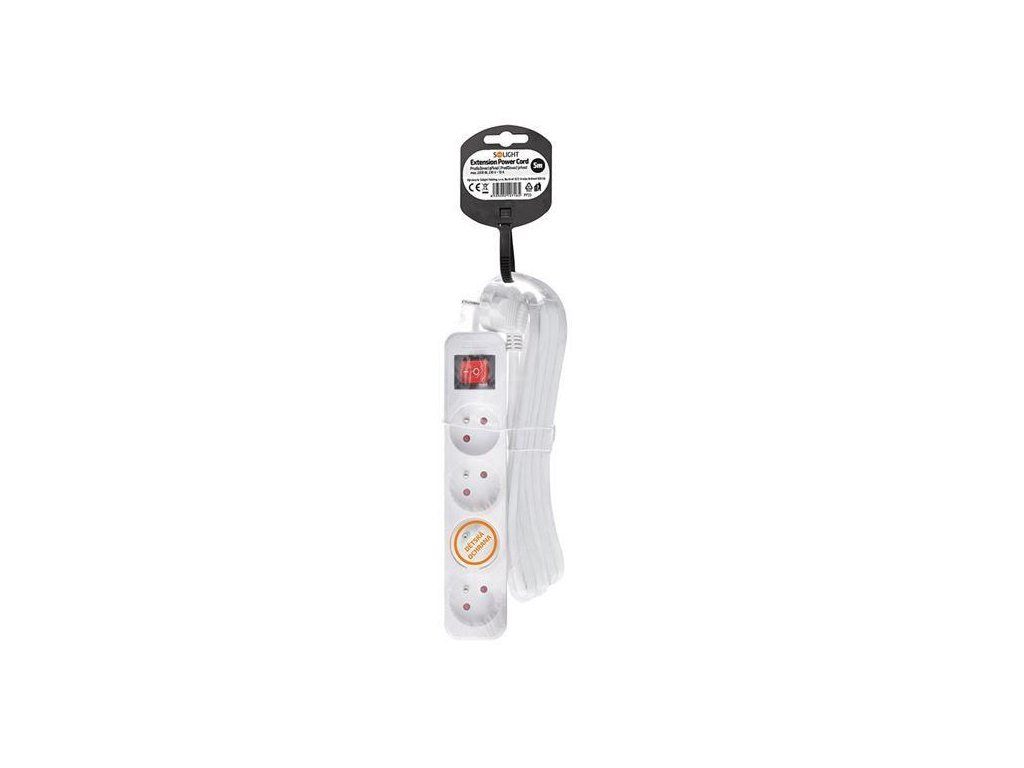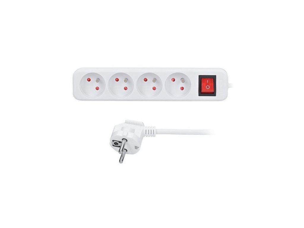Solight prodlužovací přívod, 4 zásuvky, bílý, vypínač, 5m PP33