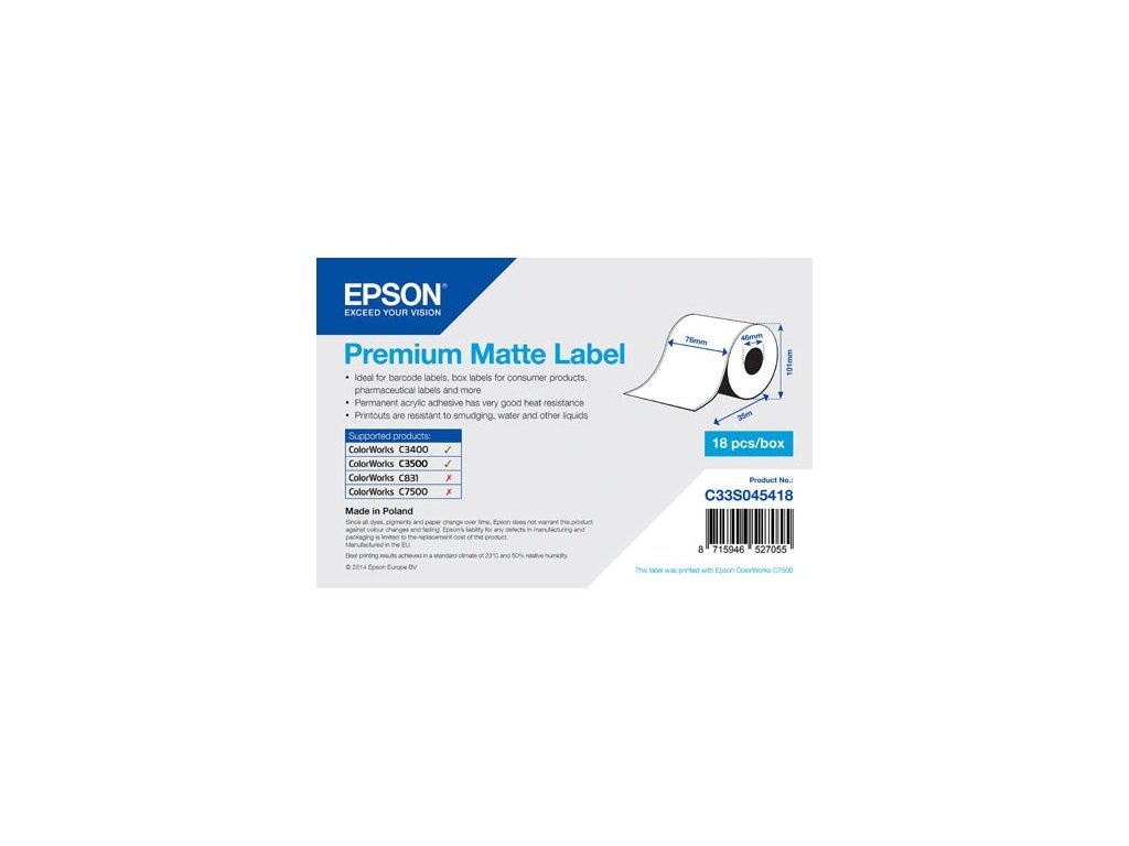 Premium Matte Label Cont.R, 76mm x 35m, MOQ 18ks C33S045418 Epson PS