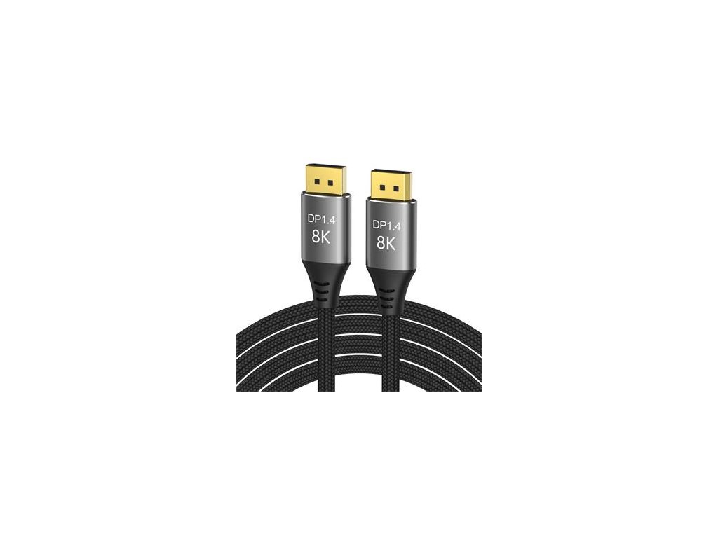 PremiumCord DisplayPort 1.4 přípojný kabel 32,4 Gbit/s, rozlišení 8K, kovové a zlacené konektory, 2 m Kabel je vybaven standardem DisplayPort 1.4 a poskytuje obzvláště vysokou šířku pásma, ideální pro plynulé přehrávání obrazu bez trhání obrazovky nebo trhání při hraní her a rozlišení ostré jako břitva s rozlišením až 8K nebo 4k. Špičková konstrukce kabelu jej předurčuje pro všechny druhy instalací. Jedná se o flexibilní prémiový kabel s tenkými kovovými konektory, ochranou proti ohybu a barevně sladěným textilním kabelem (opletený textilní plášť kabelu monitoru je příjemný na dotek a šetrný k citlivým povrchům). DisplayPort 1.4 zvyšuje maximální datovou rychlost o 50% oproti rychlostem datového přenosu DisplayPort 1.2 na 32,4Gbit/s. Technické parametry Maximální rozlišení: - 8K (7680x4320) při 60Hz a 24 bitová barevná hloubka - 5K (5120x2880) při 60Hz a 30 bitová barevná hloubka - 4K (3840×2160) při 144Hz a 60Hz a 24 bitová barevná hloubka - 2K (2560 × 1440) při 240Hz a 165Hz - FULL HD 1080p (1920x1080) při 240Hz - podporuje HDCP 2.2 a HDCP1.4, podporuje 3D a EDID - podporuje FreeSync a G-Sync, Dynamic HDR a také 32 audio kanálů a mnoho oblíbených audio formátů, např. DTS-HD Master Audio * Verze DisplayPort 1.4 * Maximální datový přenos: 32,4 Gb/s * Podporovaná barevná hloubka: (30 Bit), True Color (24 Bit) * Konektory: DisplayPort (20pinů) male <=> DisplayPort (20pinů) male * 20-vodičový kabel, dvojité stínění, 100% měděný vodič průřezu AWG30 * Pozlacené kontaktní plochy zajišťují optimální přenos signálu a zabraňují korozi * Kovové hliníkové krytky konektorů * Tloušťka kabelu: 6 mm * Kabel s měkkým bavlněným opletem: barva černo-šedá * Barva konektorů: Space Grey * Balení v PVC sáčku s EAN kódem a popisem * Délka kabelu: 2 m
