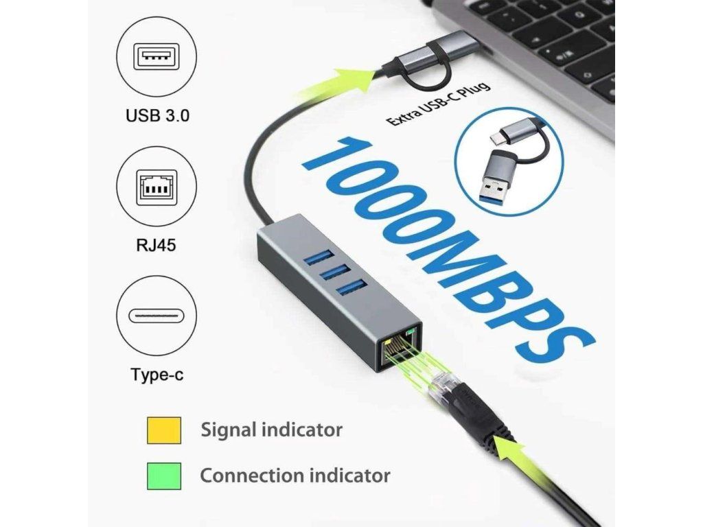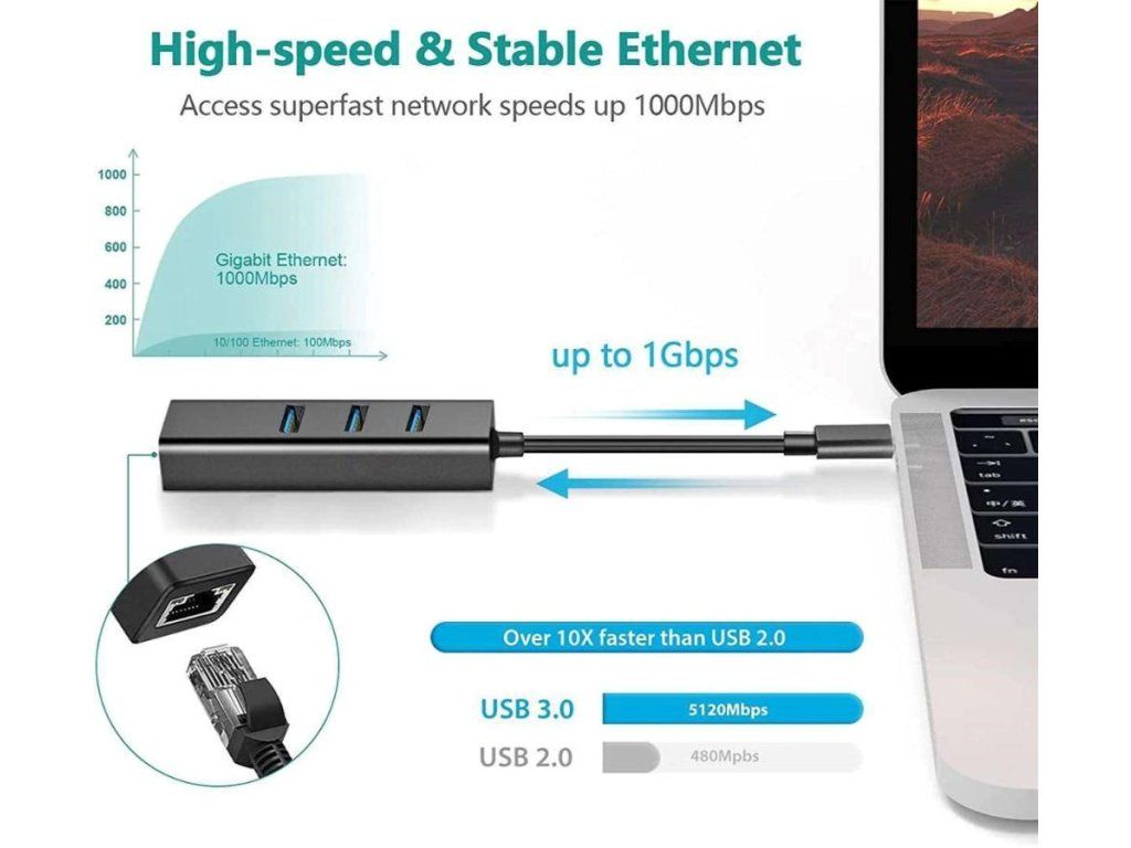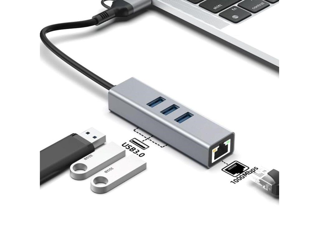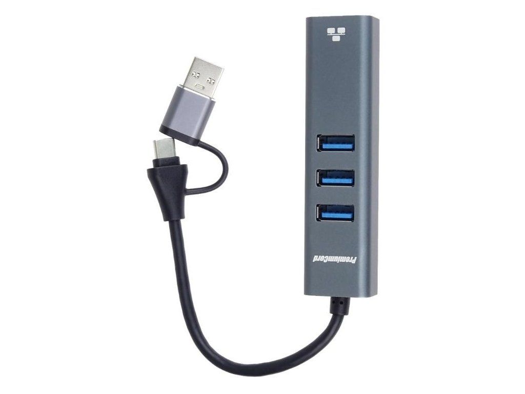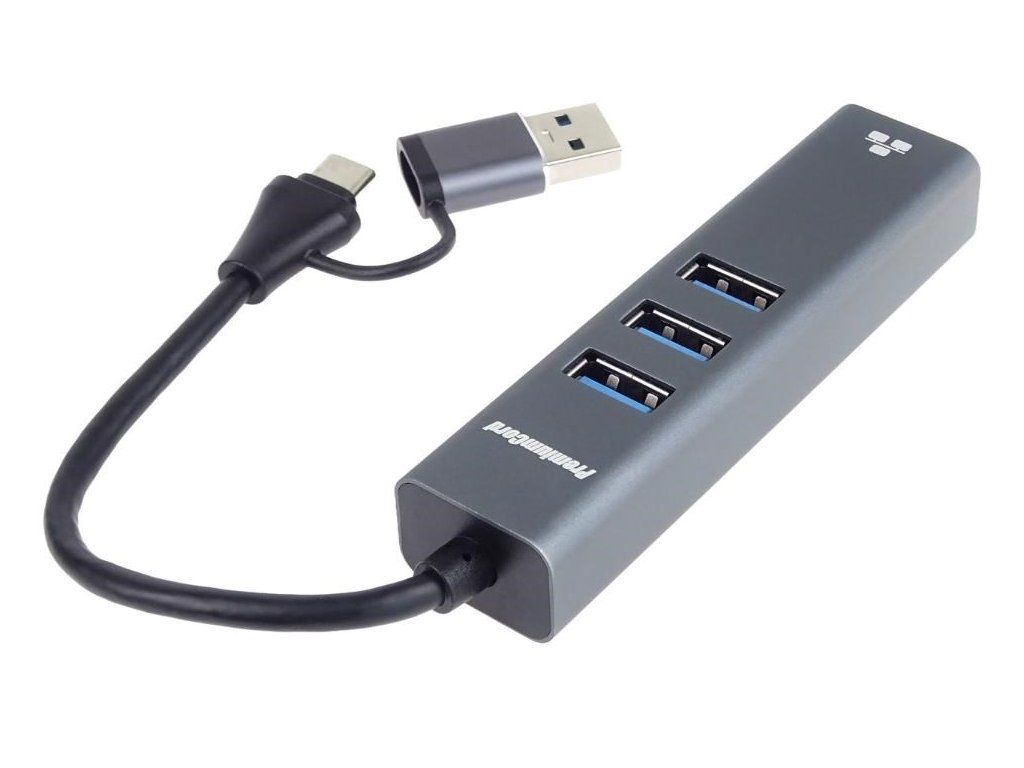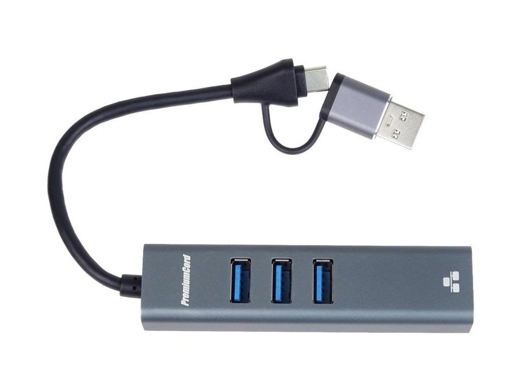 PremiumCord Adaptér USB-C a USB-A na Gigabit 10/100/1000Mbps + 3x USB 3.2 konektor ku31ether06