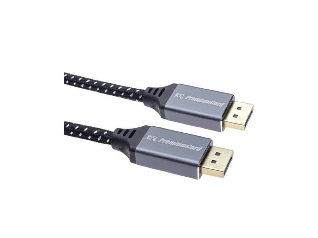 PremiumCord DisplayPort 1.4 přípojný kabel M/M pro rozlišení 8K, kovové krytky a zlacené konektory, 1m