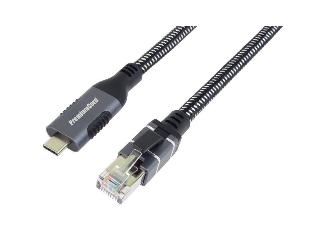 PremiumCord Ethernetový kabel USB-C na LAN RJ45 10/100/1000, 2m ku31net2