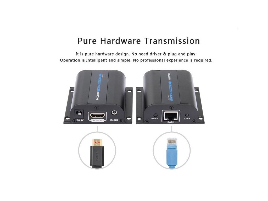 - Extender prináša HDMI digitálny obraz, zvuk a IR riadiace signály