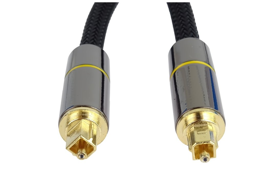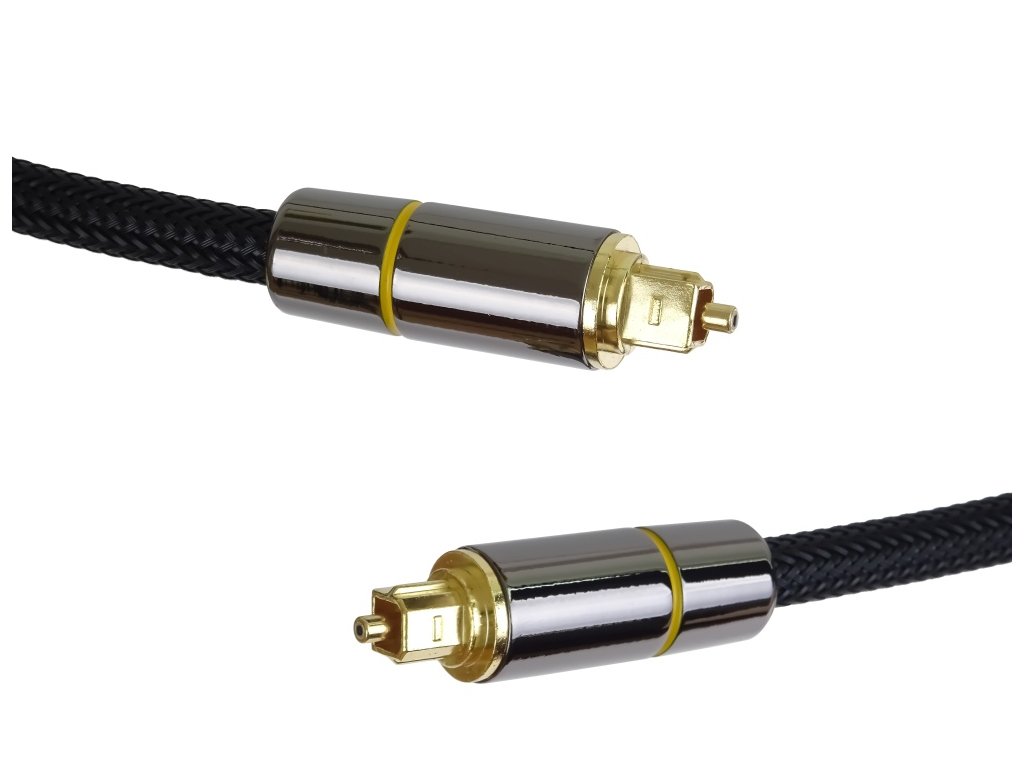Optický kabel pro digitální propojení audio periférií s vynikajícím zvukovým přenosem signálu rychlostí světla. Oproti metalickým kabelům není ovlivňován elektromagnetickým rušením, způsobujícím chyby a rušení v přenosu nebo zkreslení zvuku (u analogového přenosu). Ideální řešení pro dosažení maximální kvality zvuku za všech podmínek. Specifikace *PremiumCord Optický audio kabel Toslink *Digitální optický audio kabel pro propojení TV a domácího kina nebo receiveru *Přenáší zvukové signály ve špičkové zvukové kvalitě, pro připojení vysoce kvalitních zvukových zařízení *Pozlacené kontaktní plochy pro optimální přenos signálu *Nárazuvzdorné pouzdro konektoru vyrobené výhradně z kovu *Optimalizovaná ochrana proti ohybu a flexibilní kabelové návleky *Kvalitní kabel se speciálním optickým vláknem o vnějším průměru kabelu 7mm *Masivní kovové konektory v Gold - Metal designu *Kabel s optickým vláknem s nylonovým potahem o vnějším průměru 7mm *Optické vlákno je odolné vůči elektromagnetickému rušení *Konektory: 2x Toslink, pozlacený konektor *Průměr kabelu: 7mm *Pozlacené konektory, krytky konektorů v barvě šedivé *Barva: černá , nylonový potah barvy černé *Délka: 2 m
