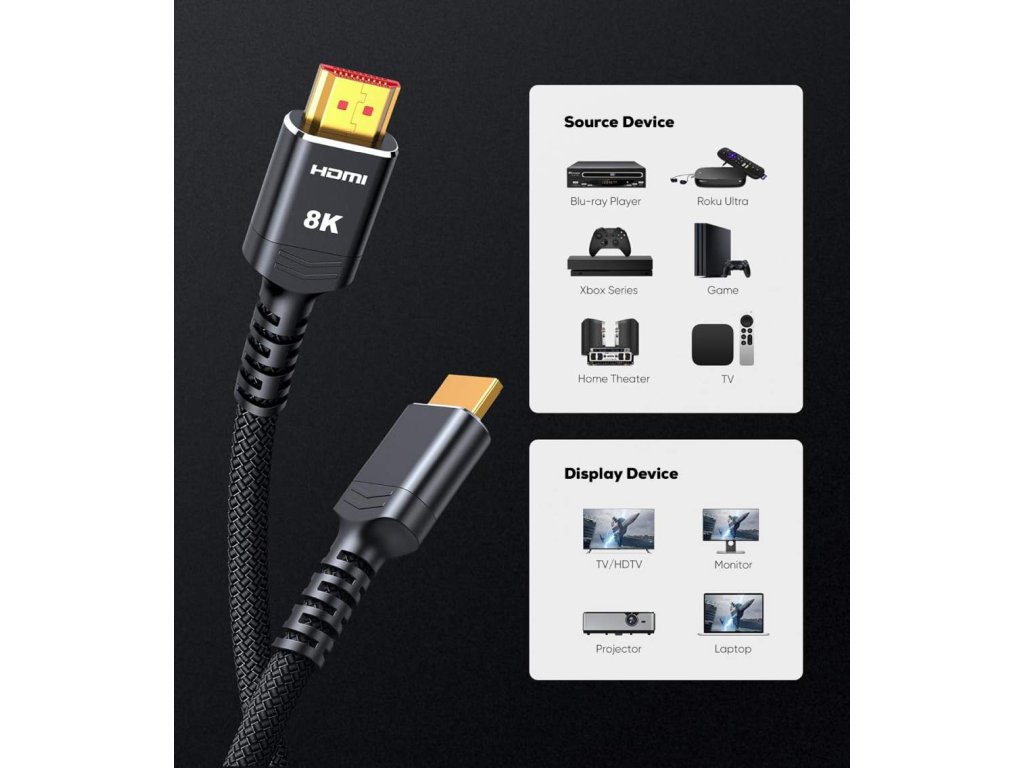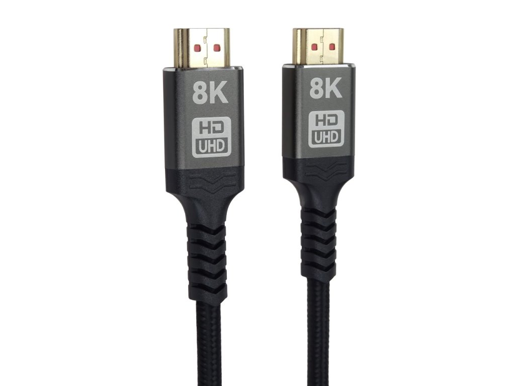 PremiumCord ULTRA HDMI 2.1 High Speed + Ethernet kabel 8K@60Hz,zlacené 0,5m Špičkový ULTRA HDMI 2.1 propojovací kabel pro nejvyšší rozlišení 8K@60Hz a 4K@120Hz s kovovými Zinc-Alloy konektory, flexibilním kabelem pro nejnáročnější použití. Kabel vícenásobně stíněný, dokáže přenášet digitální zvuk i obraz a podporuje digitální ochranu obsahu HDCP. Kabel má integrován vysokorychlostní přenos ethernetu. Technické parametry * Maximální rozlišení: Ultra HD 8K@60hz, 4K@120Hz, YUV 4:4:4 * Rozlišení: 8K@60Hz a 4K@144Hz, FULL HD 1080p * Rozlišení: 7680 × 4320 bodů při 60Hz, 3840 × 2160 bodů při 120Hz nebo nižší podporované formáty 1080p FULL HD/1080i/720p/720i - podporuje HDMI 2.1 a nižší, HDCP 2.2, Enhanced Audio Return Channel (eARC) , High Dynamic Range (HDR) - podporuje 8K, 4K, Deep Color, 3D, xvYCC (xvColor), auto lip-sync, eARC, CEC, HDCP, Dolby TrueHD, HEC - 3D video po HDMI připojení, VRR (Variable Refresh Rate – variabilní snímková frekvence) - zpětný audio kanál pro poslání signálu z tuneru TV zpět do domácího kina/surround systému * HDMI 2.1 High Speed kabel + Ethernet kabel * Maximální datový přenos: 48 Gb/s * Přenos počítačové sítě (ethernetu) po HDMI kabelu * Podporovaná barevná hloubka: 24-bit (16.7 million barev) * Pozlacené kovové konektory: HDMI typ A (19pinů) male <=> HDMI typ A (19pinů) male * 19-žilový kabel, třikrát stíněný, 100% měděné vodiče AWG30 * Pozlacené kontaktní plochy zajišťují optimální přenos signálu a zabraňují korozi * Kovové hliníkové krytky konektorů * Průřez kabelu: 6 mm * Kabel s měkkým bavlněným opletem: barva černá * Barva krytů konektorů: černá-metalická * Balení v PVC sáčku s EAN kódem a popisem * Délka kabelu: 0,5 m