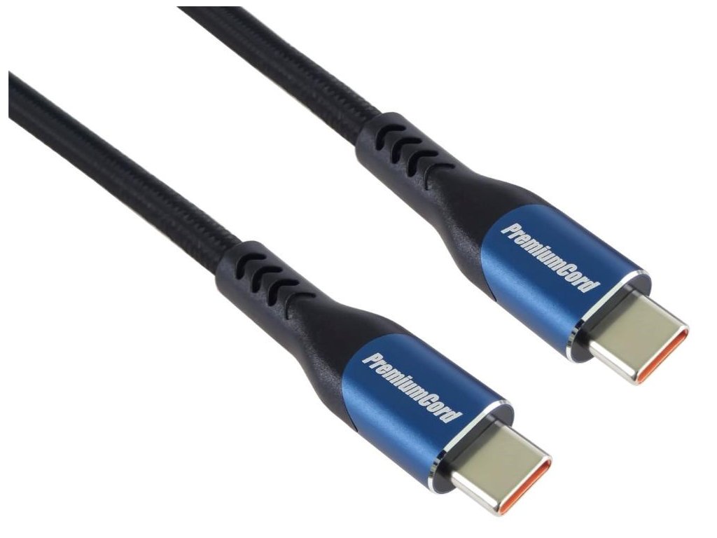 PremiumCord USB-C kabel ( USB 3.2 GEN 2x2, 5A, 100W, 20Gbit/s ) 2m, bavlněný oplet, černý ku31cry2