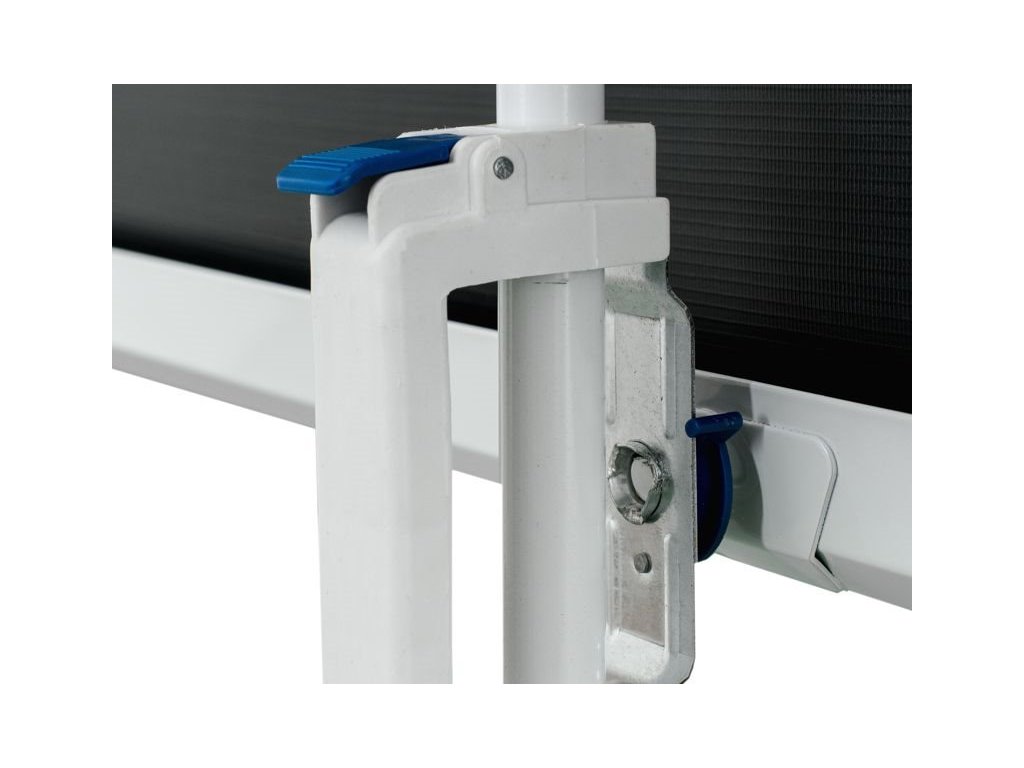 - Plátno se dá jednoduše zasunout do krytu. Chrání se tím před poškozením. Kryt plátna je pevně připevněn ke stativu. Při užívání je kryt otočen horizontálně, při složení je otočen vertikálně.
