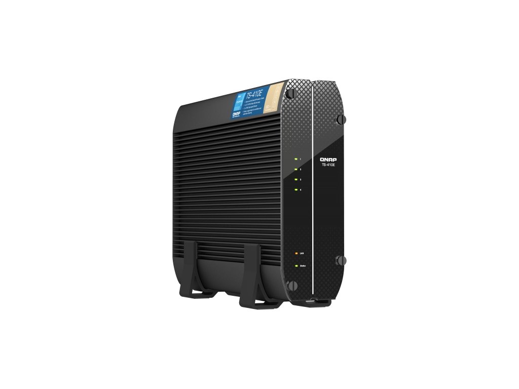 TS-410E Výkonný hardware a chlazení bez ventilátorů 2,5GbE profesionální NAS Odkaz na web výrobce: https://www.qnap.com/cs-cz/product/ts-410e Seznam kompatibility pro tento model: https://www.qnap.com/cs-cz/compatibility/?model=711&category=ssd&filter[type]=3 Funkce Profesionální 2,5GbE NAS TS-410E je navržen pro provoz v prostředích citlivých na hluk. Díky konstrukci bez ventilátoru a pevnému šasi lze TS-410E umístit ve svislé poloze nebo použít jako set-top box, což poskytuje flexibilitu při instalaci na různých místech. SSD cache lze také nakonfigurovat pro vysokorychlostní I/O, aby se urychlily a vynikly náročné aplikace. *Přenosové rychlosti až 5 Gb/s lze dosáhnout nastavením sdružování portů pomocí dvou integrovaných portů 2,5 GbE. *Podporuje přehrávání 4K a překódování v reálném čase pro maximální vizuální zážitek! *Nainstalujte SSD disky SATA 6 Gb/s a aktivujte SSD cache pro zvýšení výkonu IOPS. *Konstrukce bez ventilátoru a s nízkými vibracemi udržuje TS-410E chladný a tichý a zároveň zabraňuje usazování prachu. *Centrálně ukládejte fotografie, hudbu a videa a snadno k nim přistupujte. *Spolehlivé zálohovací centrum pro vaše PC/Mac, virtuální počítače, kontejnery, cloudová data a data SaaS. Vítěz designového ocenění reddot 2023, více zde: https://www.red-dot.org/project/ts-410e-65446 OBSAH BALENÍ *TS-410E *Ethernet cable x 1 *Power Cord x 1 *AC Adapter: PWR-ADAPTER-96W-A01 *Flat head screw x 16 (for 2.5'' HDD) SPECIFIKACE CPU *Intel Celeron J6412 4-core/4-thread processor, burst up to 2.6 GHz Architektura CPU *x86 64 bitů Jednotka s pohyblivou řádovou čárkou *Ano Šifrovací modul *Ano Systémová paměť *8 GB, not expandable Maximální paměť *8 GB, not expandable Paměť Flash *4 GB (dvojitá ochrana OS při spouštění) Pozice pro diskové jednotky *4 x 3,5'' SATA 6 Gb/s, 3 Gb/s Kompatibilita diskových jednotek *2.5-inch SATA solid state drives Vyměnitelné za provozu *Ano Podpora akcelerace SSD cache *Ano Gigabitový Ethernet port (RJ45) *2 (2.5G/1G/100M/10M) Rámec Jumbo *Ano USB 3.2 Gen 2 port (10 Gb/s) *4 HDMI výstup: *1, HDMI 1.4b (až 3840 x 2160 při 30 Hz) Tvarový činitel *Stolní Indikátory LED *Power/Status, LAN, SSD 1-4 Tlačítka *Napájení, reset, Automatické kopírování na USB Rozměry (V x Š x H) *60 × 180 × 254 mm Hmotnost (čistá) *2,64 kg Hmotnost (celková) *3,83 kg Provozní teplota *0 - 40 °C (32°F - 104°F) Relativní vlhkost *Relativní vlhkost 5 až -95 %, bez kondenzace, teplota vlhkého teploměru: 27 °C (80,6 °F) Napájecí jednotka *External Power Adapter, 90W and above, AC 100-240V Systémové varování *Bzučák Bezpečnostní slot Kensington *Ano Max. počet souběžných připojení (CIFS) *1500 Více informací se dozvíte na stránkách výrobce