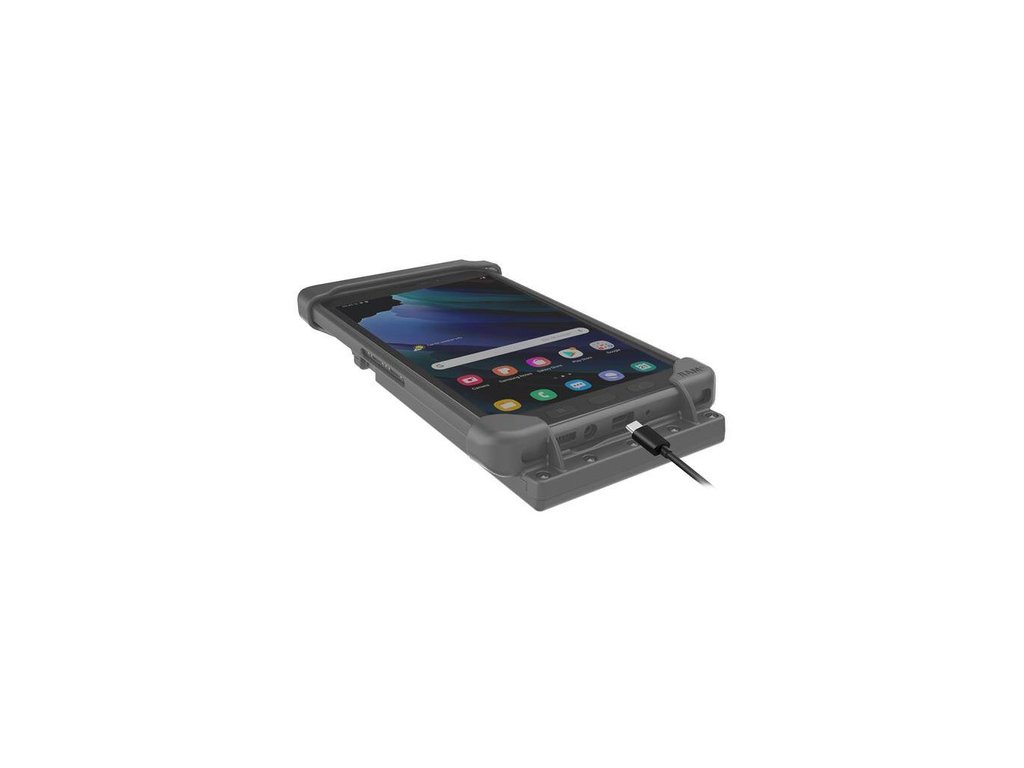 Držák RAM® Tab-Tite™ pro Samsung Tab Active5 a 3 Pružinový, rychloupínací držák RAM Tab-Tite nabízí bezpečné uchycení se snadným přístupem k připevněnému tabletu. Vyměnitelné konce pohárků jsou navrženy speciálně pro Samsung Galaxy Tab Active3 a Tab Active2 s pouzdrem OEM nebo RAM Skin. Odpružený design usnadňuje vkládání a vyjímání tabletu a zároveň jej udržuje v bezpečí v různých aplikacích. Vlastní koncové kryty jsou navrženy tak, aby optimalizovaly funkčnost vašeho tabletu a umožnily přístup ke všem tlačítkům, portům a funkcím tabletu. Součástí je sada čtyř matic a šroubů pro připevnění držáku k jakýmkoli komponentám RAM, které obsahují univerzální vzor otvorů AMPS. Součástí je sada čtyř matic a šroubů pro připojení kolébky k jakýmkoli komponentám RAM nebo držákům, které obsahují univerzální vzor otvorů AMP. Kolébka Tab-Lock je kompatibilní s jakýmkoli tabletem, který odpovídá rozměrům uvedeným níže. Při určování celkové velikosti je důležité ověřit rozměry vašeho tabletu. Poznámka: Produkt se skládá pouze z držáku. Pouzdro není součástí dodávky. *Pružinový držák zajišťuje tablet Samsung Tab Active3 nebo Tab Active2, výřez pro obtok baterie na spodní straně umožňuje přístupné nabíjení. *Kompatibilní s kulovými základnami RAM® velikosti B a C pro připojení ramene s dvojitou objímkou, technologie kulové objímky umožňuje téměř neomezenou nastavitelnost. *Vyrobeno z vysoce odolných kompozitů pro dlouhou životnost a spolehlivost v nejnáročnějších podmínkách. *Pružinový držák zajišťuje tablet Samsung Tab Active3 nebo Tab Active2 *Přístup k nabíjecímu portu umožňuje používat funkci bypassu baterie tabletu Tab Active3, když není nainstalována baterie. *Pružinový držák zajišťuje tablet Samsung Tab Active5, Tab Active3 nebo 2
