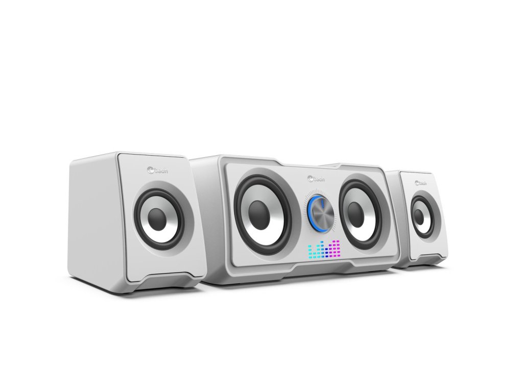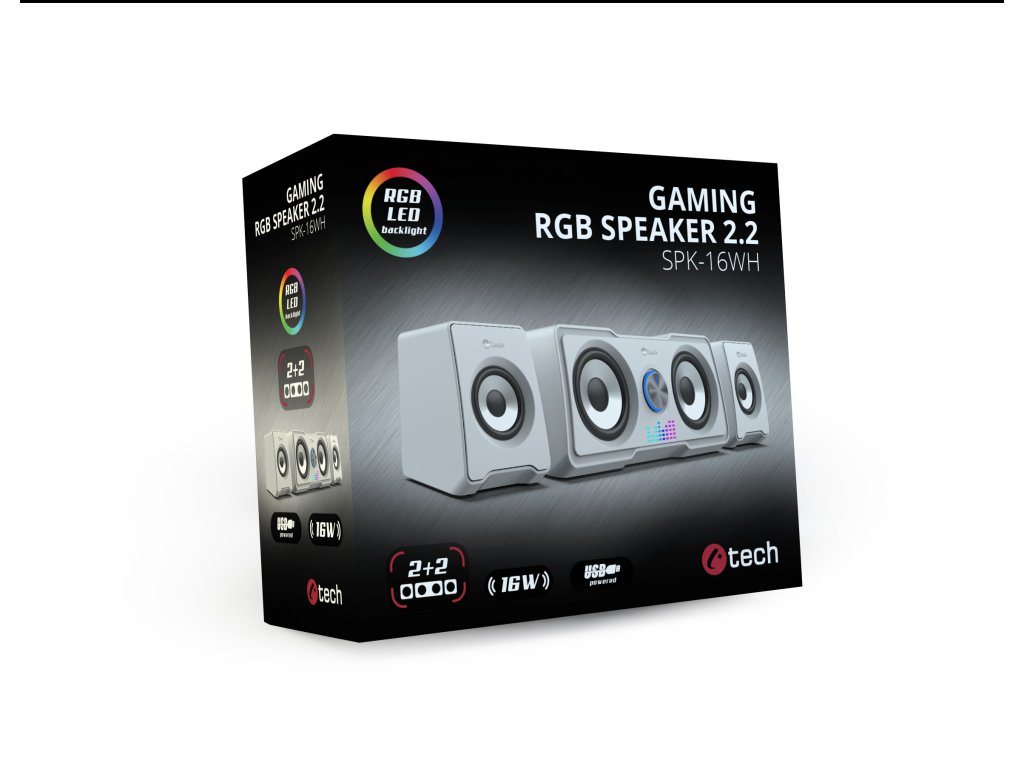 Kompaktní PC reproduktory C-tech SPK-16WH 2.2 vám zprostředkují kvalitní zvuk s výkonem 16W a frekvenčním rozsahem 150-20kHz. Díky unikátní kombinaci měničů 2+2 je reprodukovaný zvuk bohatší a více dynamický, takže si jej využijete nejen při poslechu oblíbených skladem, ale i při hraní her. O jedinečnou atmosféru při poslechu hudby se postará automatické RGB podsvícení. K ovládání hlasitosti poslouží regulátor nacházející se na jednom z reproduktorů. Tento regulátor slouží k zapnutí a vypnutí zařízení. Připojení soustavy k zařízením zajistí kabel s 3,5mm jackem, napájení zase USB kabel. Specifikace: Celkový výkon: 16W (2×5W + 2x3W RMS) Velikost měničů: 2x3'' + 2x2'' Frekvenční rozsah: 150Hz-20KHz Napájení: DC5V USB Připojení: stereo jack 3,5mm Ovládání hlasitosti: na reproduktoru Délka přívodního kabelu: 1,3m Velikost: 234x102x107mm, 70x100x103mm Váha: 0,96kg