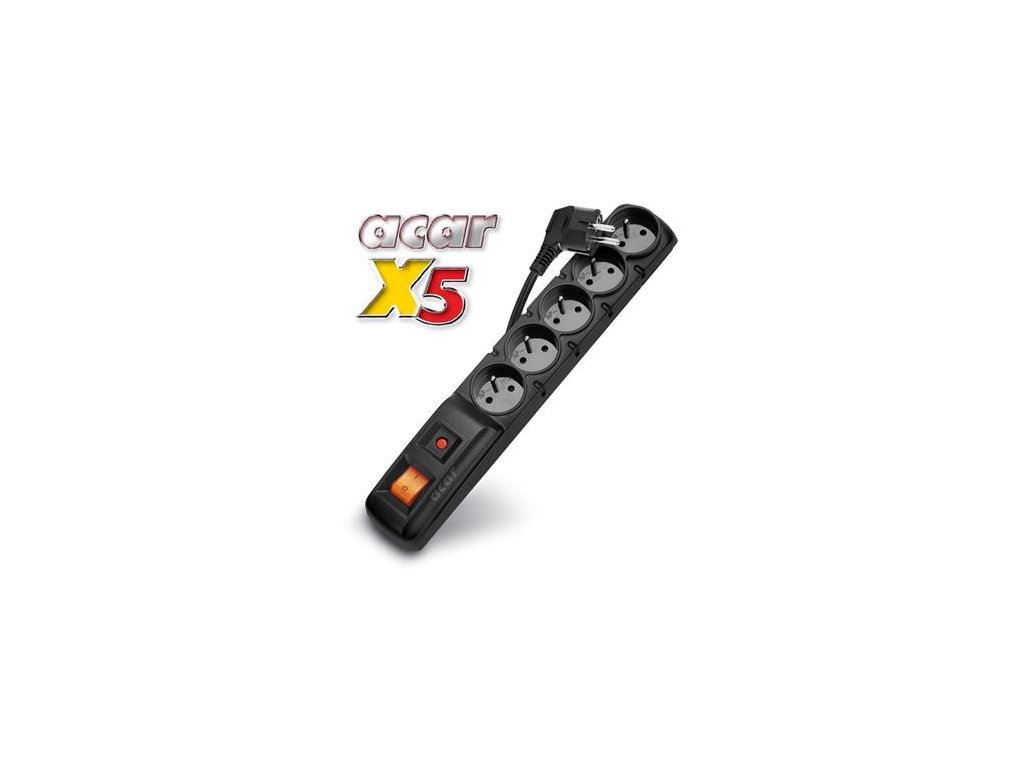 počet portů: 5 ks Délka kabelu: 3 m Vypínač: ano Pojistka: 1 ks Přepěťová ochrana: ano Acar F5 je nejoblíbenější ochranné zařízení z rodiny acar-AXON . S délkou menší než 33 cm poskytuje pět uzemněných elektrických zásuvek. Toto množství je dostatečné ve většině aplikací a relativně malá velikost umožňuje jeho volné umístění i na stůl. Použitou automatickou pojistku lze nazvat prakticky bezúdržbovou Jmenovité napětí: 230 V, 50 Hz Jmenovitý proud: 10 A Jištění: automatická pojistka 10A/250V Vypínač: podsvětlený dvojpólový vypínač Svodový proud: ‹ 0.5 mA Doba zpoždění: ‹ 25 ns Max. trvalé pracovní napětí přepěťového systému: 250 V, 50 Hz Ochranná úroveň Up: ‹=1.3kV (L/N) Jmenovitý proud In: 2 kA (L/N) - 8/20 µs Maximální impulsní svodový proud Imax: 6.5 kA (L/N) - 8/20 µs Ochranný systém: 2P+Z Materiál zásuvkového pole: samozhášející plast Počet zásuvek: 5 zásuvek s ochranným kolíkem 10A/250V Rozměry: 330x54x55mm Hmotnost: 0.4 kg