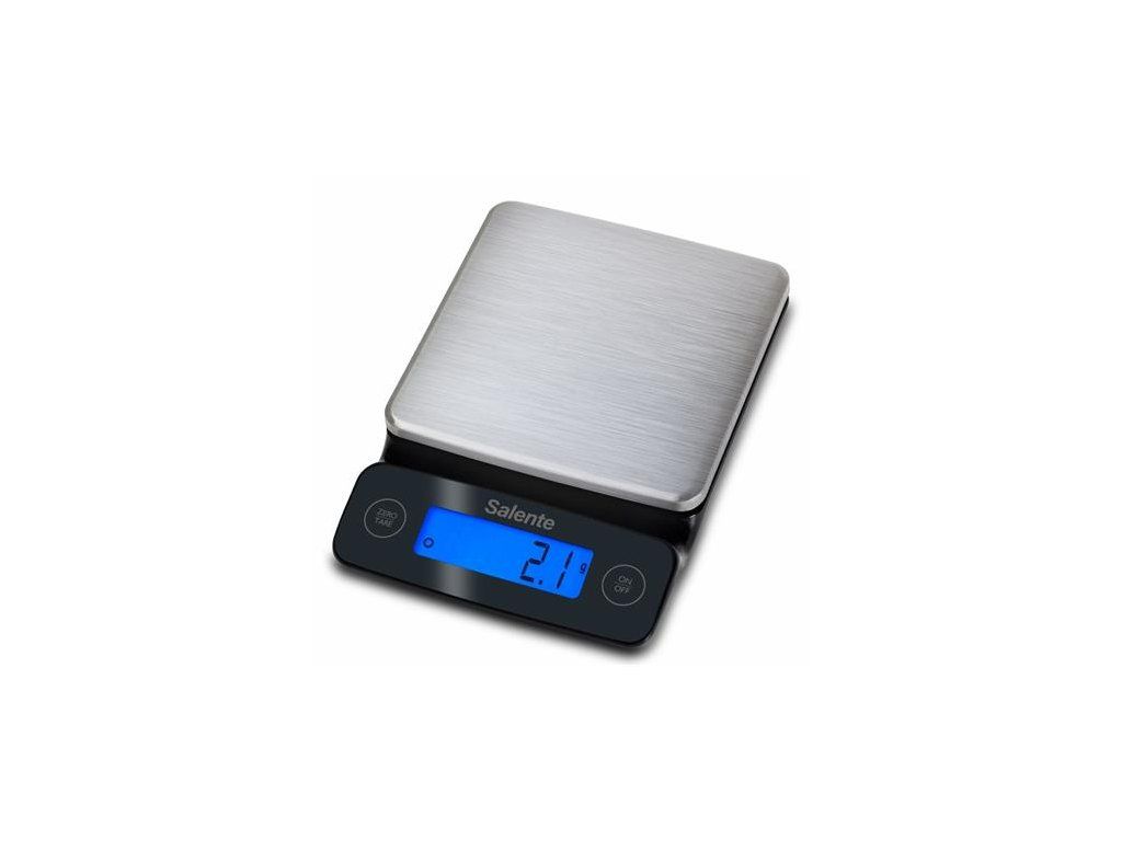 Váha Salente DiamondCook je unikátní kombinací klasické kuchyňské váhy s váživostí do 3 kg a přesné desetinné váhy schopné navážit např. 5 gramů kávy, 8 gramů droždí nebo přesnou dávku léčiv s přesností na 0,1 gramu.