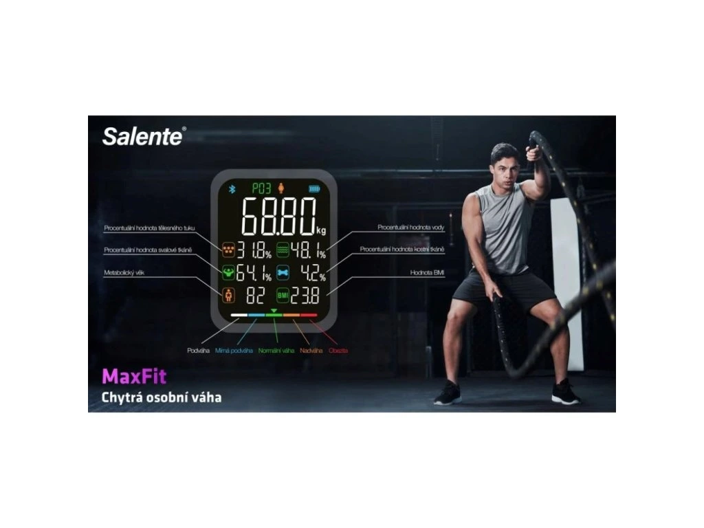 Salente MaxFit, chytrá osobní diagnostická fitness váha, Bluetooth, černá MAXFIT-BK Evolveo