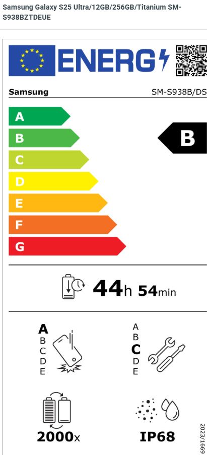 AI společník, který zjednoduší tvůj život Umělá inteligence integrovaná přímo v telefonu Úžasné detaily fotek a videí i ve tmě Naše nejbezpečnější zařízení Naše nejvýkonnější zařízení pro AI a hraní her *Galaxy AI *Zvýšená odolnost IP68 *Corning® Gorilla® Armor *Stereo reproduktory *Samsung DeX *Smart View *Always On Displej *Materiál rámu: titan *Podpora per S Pen Operační systém: Android 15 Procesor - počet jader: Snapdragon 8 Elite for Galaxy Procesor - frekvence: 4,32 GHz Uživatelská paměť [GB]: 256 Velikost RAM [GB]: 12 Paměťové karty: Ne Displej - úhlopříčka [palce]: 6,9“, Dynamic AMOLED 2X Displej - rozlišení [pix]: 3120 x 1440 WQHD+ Dotykový displej: Ano Klávesnice: Ne Konektivita: *Bluetooth 5.3 *Wi-Fi 7 *eSIM Senzory: *Snímač otisků prstů (v displeji) Fotoaparát: *Hlavní: 200 MP, f/1.7, OIS *Velikost hlavního snímače: 1/1.3“, 0.6µm *Ultra širokoúhlý: 50 MP, f/1,9, 120° *Tele objektiv: 50 MP OIS / 10 MP OIS *Optický zoom: 5x / 3x *Přední: 12 MP, f/2.2 Baterie: *Bezdrátové nabíjení *Rychlost nabíjení: 45 W *Kapacita baterie: 5000 mAh Rozměry [mm]: 77,6 x 162,8 x 8,2 mm Hmotnost [g]: 218 g Záruka: 24 měs.