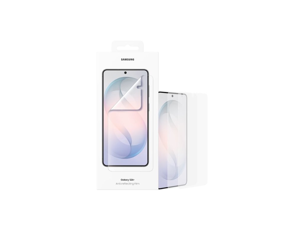 Čistý displej bez odlesků. Skvělá viditelnost v každém světle Antireflexní fólie omezuje odlesky a rušivé odrazy, takže je obrazovka tvého Galaxy S26+ dobře viditelná i na přímém slunečním světle. Díky speciálnímu povrchu, který brání ulpívání šmouh, si zachovává plynulou dotykovou odezvu a plnou funkčnost při rozpoznávání otisků prstů, aniž by na povrchu zůstávaly skvrny.Fólie na displeji Galaxy S26+ přesně sedí a zachovává jeho čistý vzhled bez ztráty kvality obrazu nebo původní barevnosti.